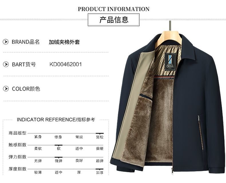 중년 남성 코트 플러스 벨벳 두꺼운 아빠 재킷 가을 겨울 면 재킷 중년 및 노인 면 의류스토어 가기