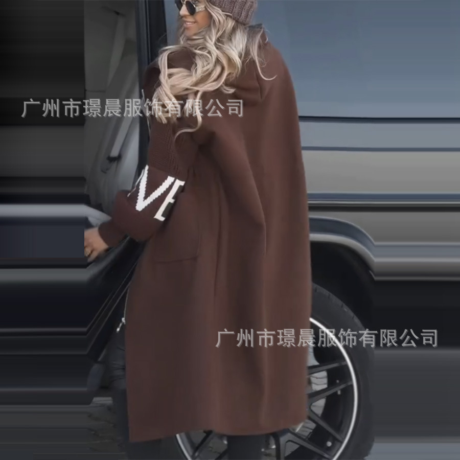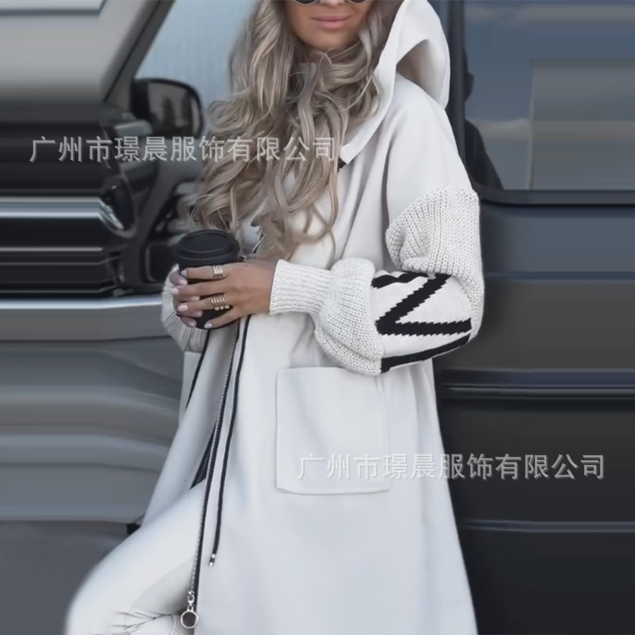 아마존 2024 가을과 겨울 새로운 국경 유럽과 미국 패션 대외 무역 여성 캐주얼 후드 긴 스티칭 코트