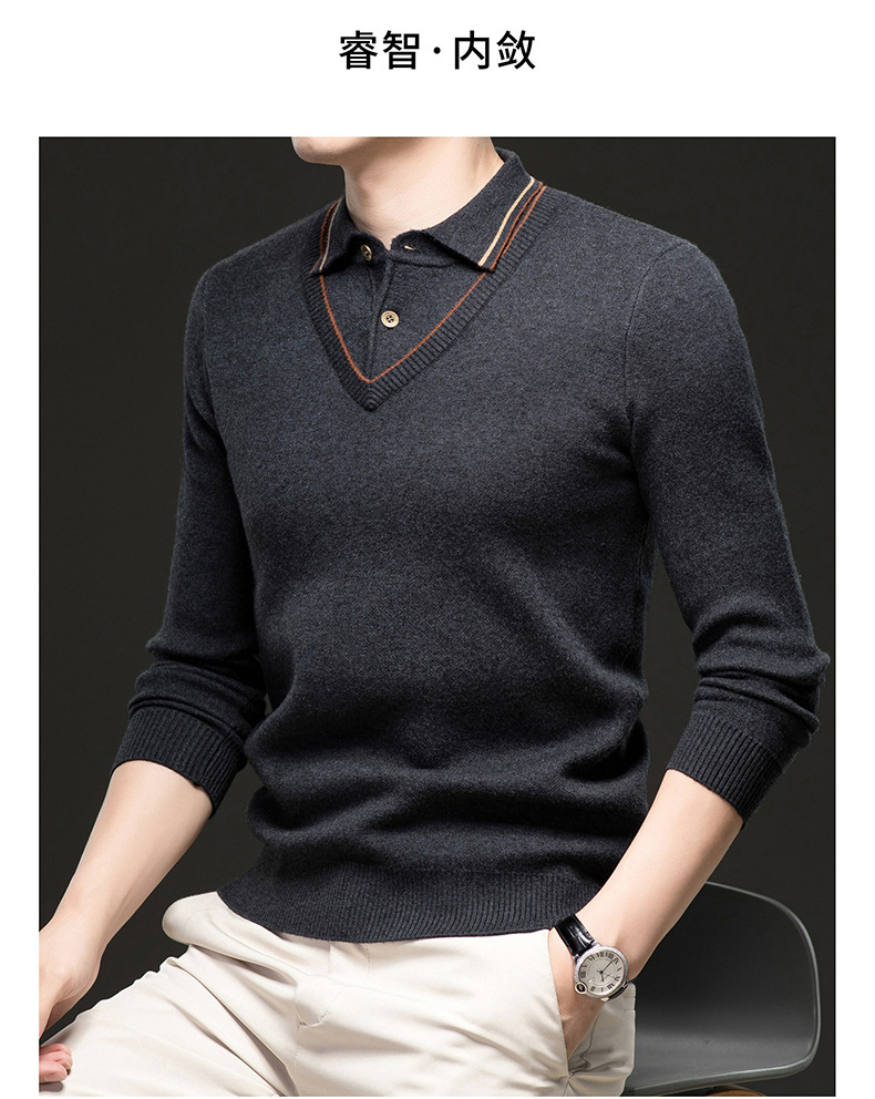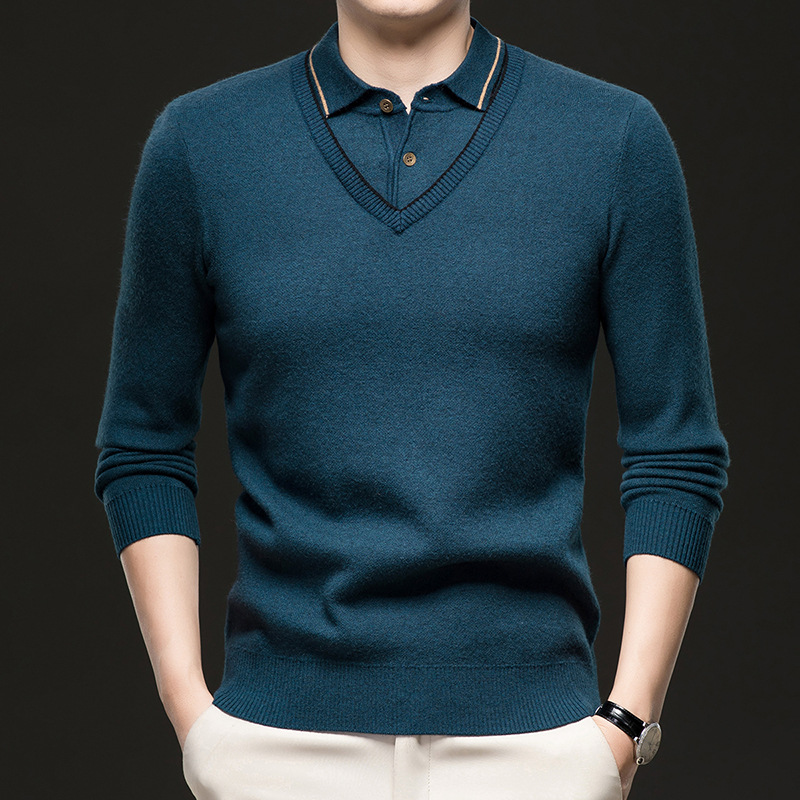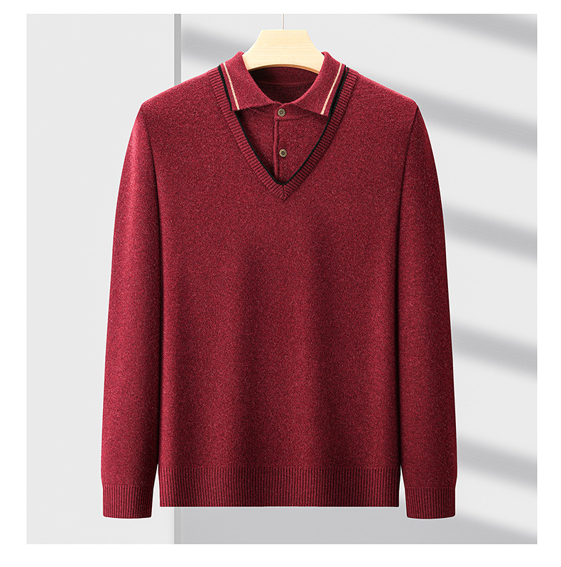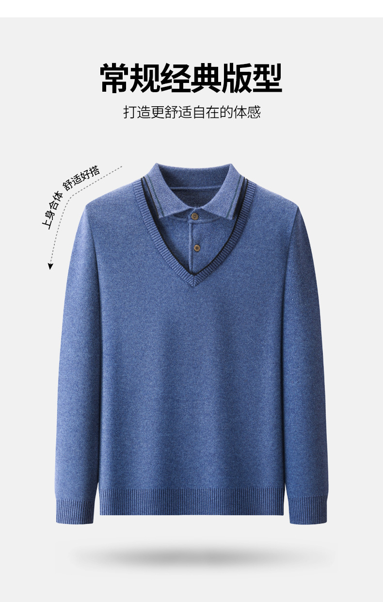 남성 하이 엔드 가을 겨울 가짜 투피스 니트 스웨터 두꺼운 중년 및 노인 비즈니스 패션 아빠베이스 울 스웨터스토어 가기