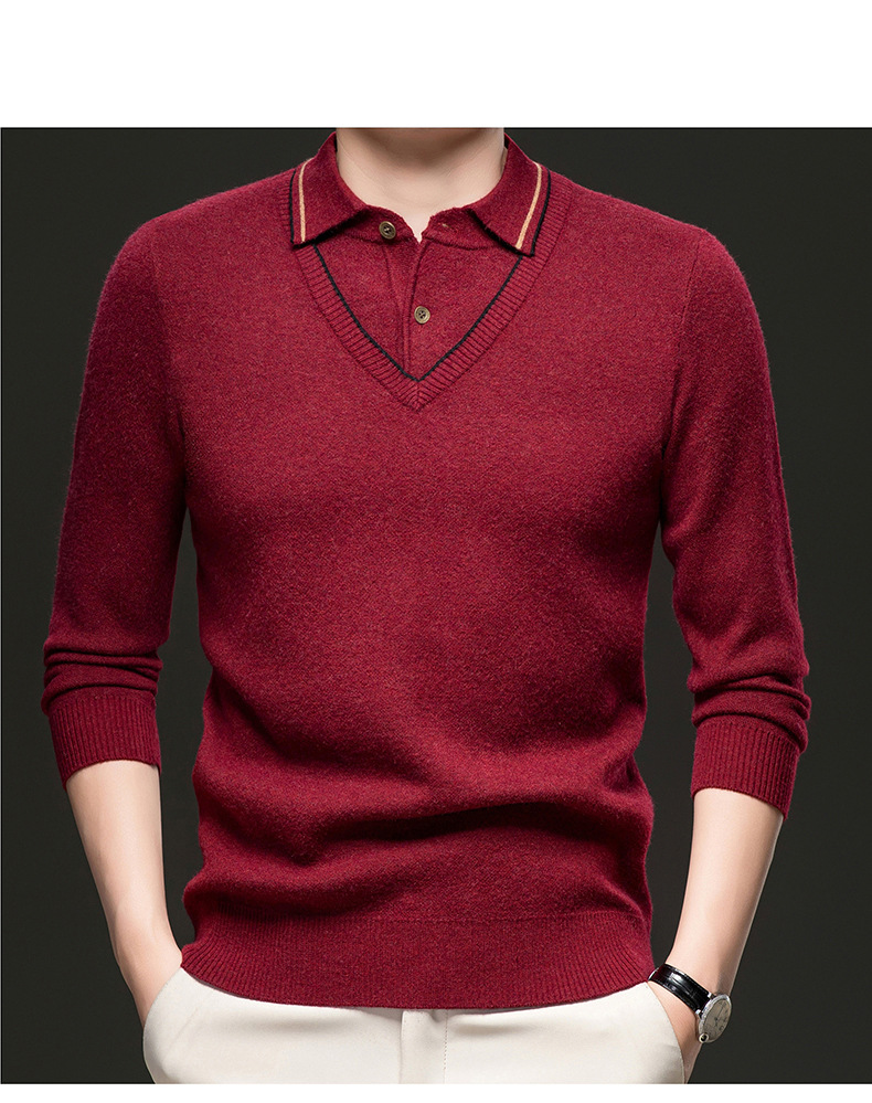 남성 하이 엔드 가을 겨울 가짜 투피스 니트 스웨터 두꺼운 중년 및 노인 비즈니스 패션 아빠베이스 울 스웨터