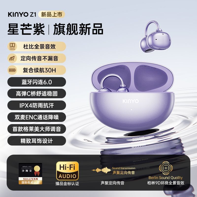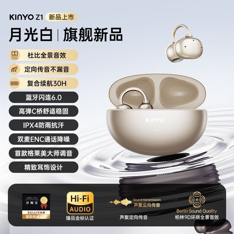진유펜 신형 Z1 블루투스 이어폰, 완전 무선 골전도 이어클립형 스포츠 러닝용, 인이어 아닌 디자인, 긴 배터리 수명, 소음 감소 기능스토어 가기