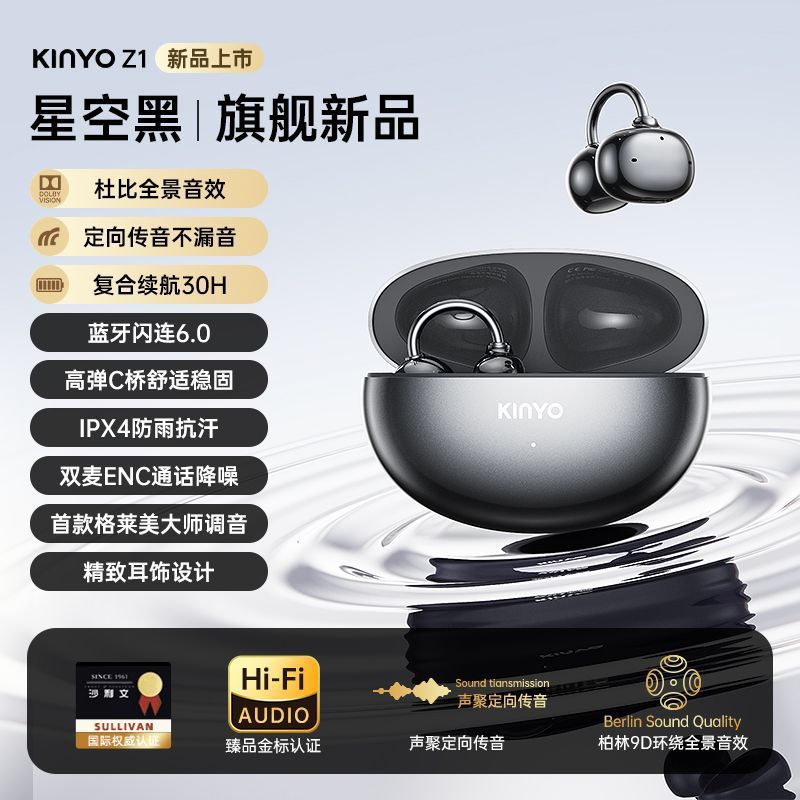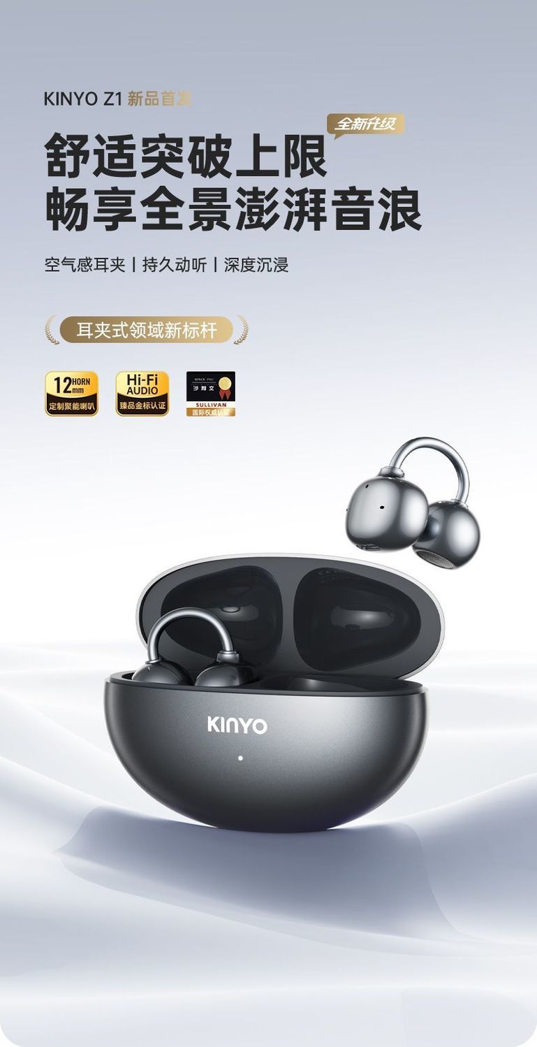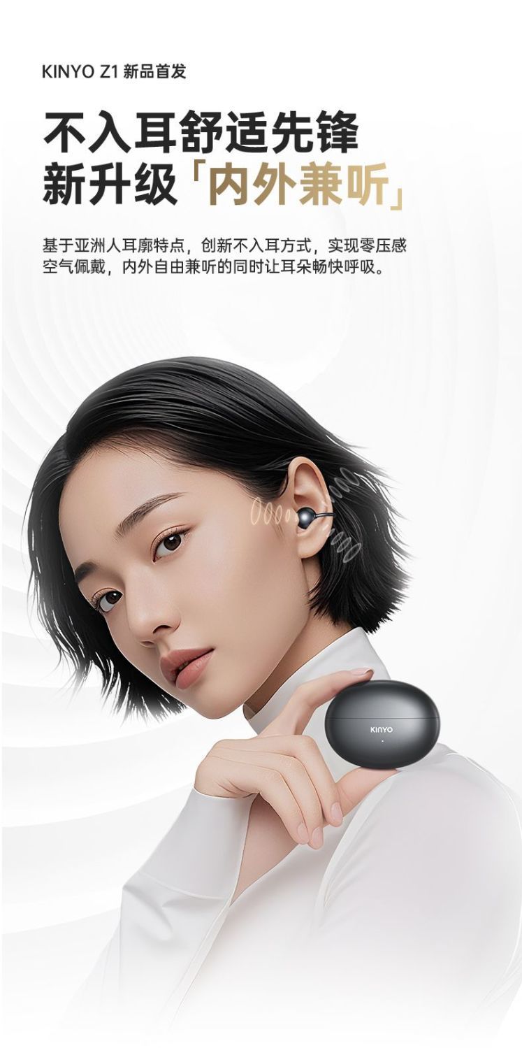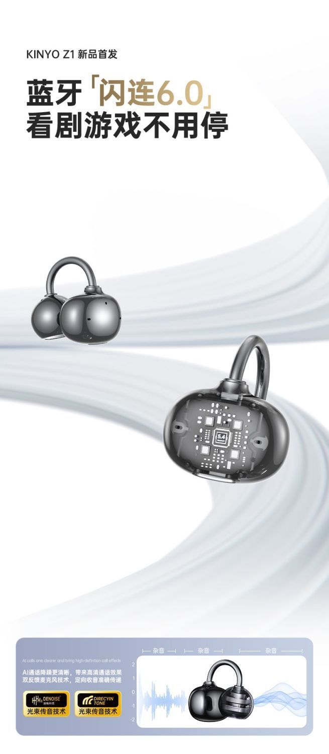 진유펜 신형 Z1 블루투스 이어폰, 완전 무선 골전도 이어클립형 스포츠 러닝용, 인이어 아닌 디자인, 긴 배터리 수명, 소음 감소 기능