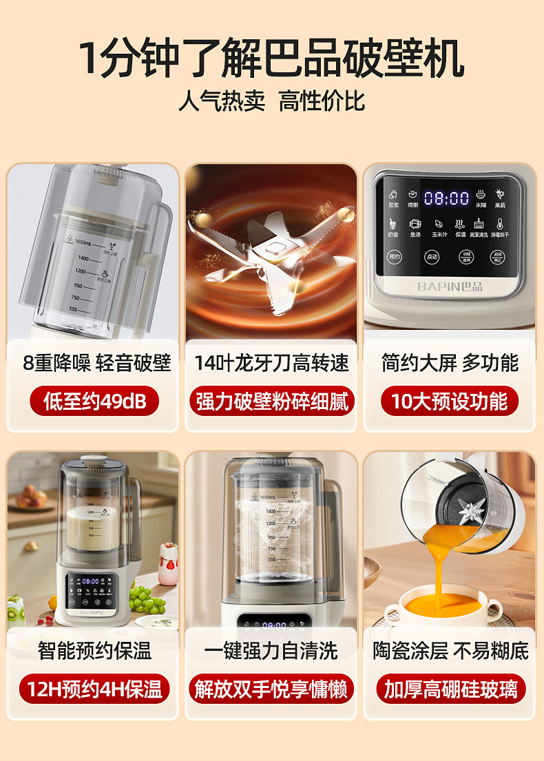 벽 깨는 기계 가구 2023 새로운 자동 사일런트 쌀 페이스트 기계 다기능 과즙 짜는기 요리 두유 기계스토어 가기