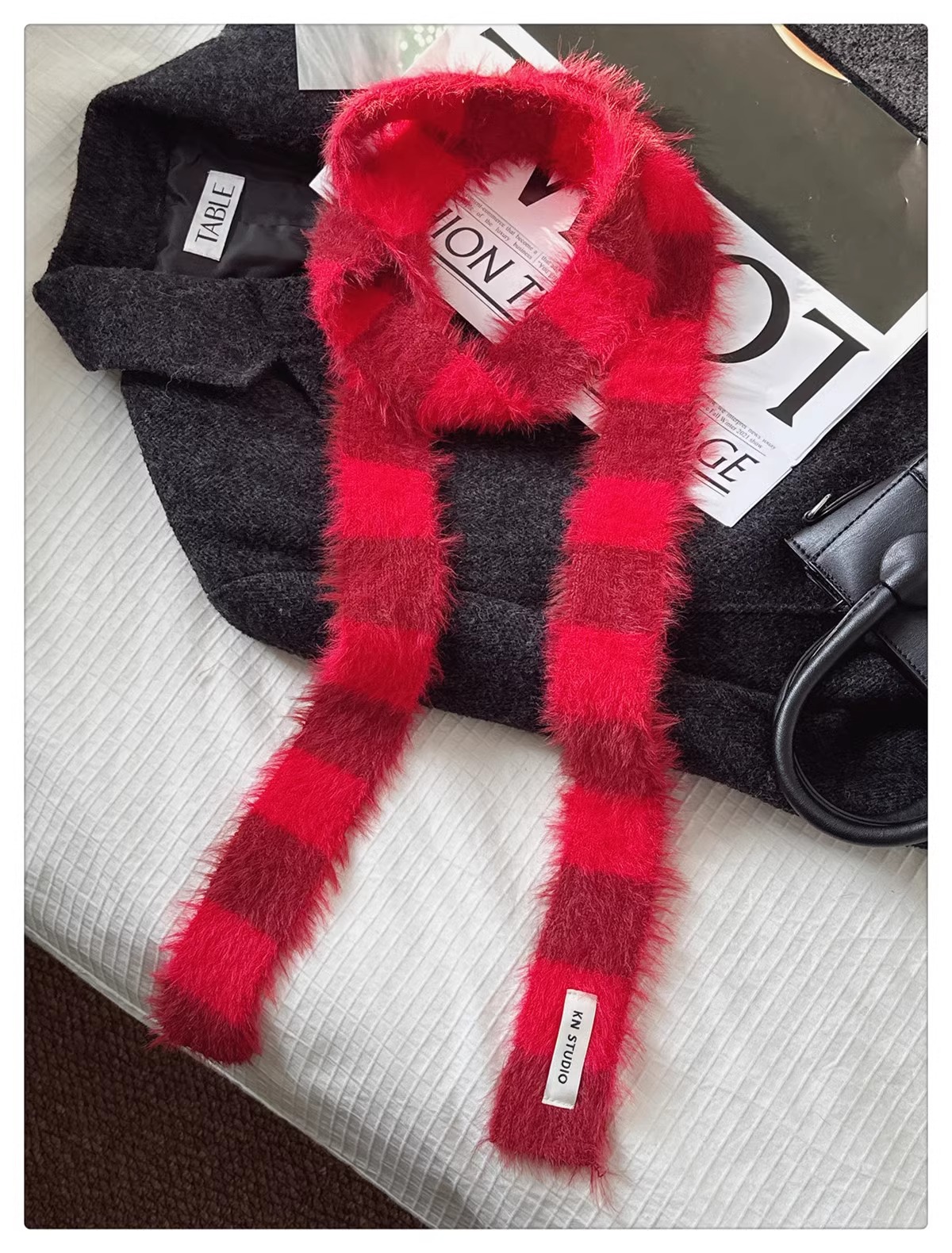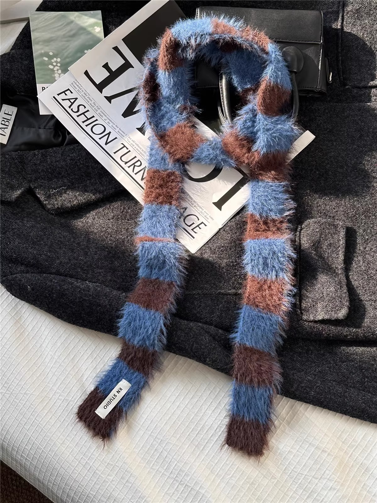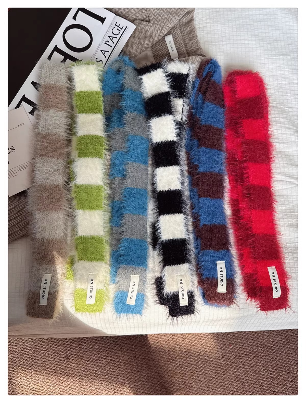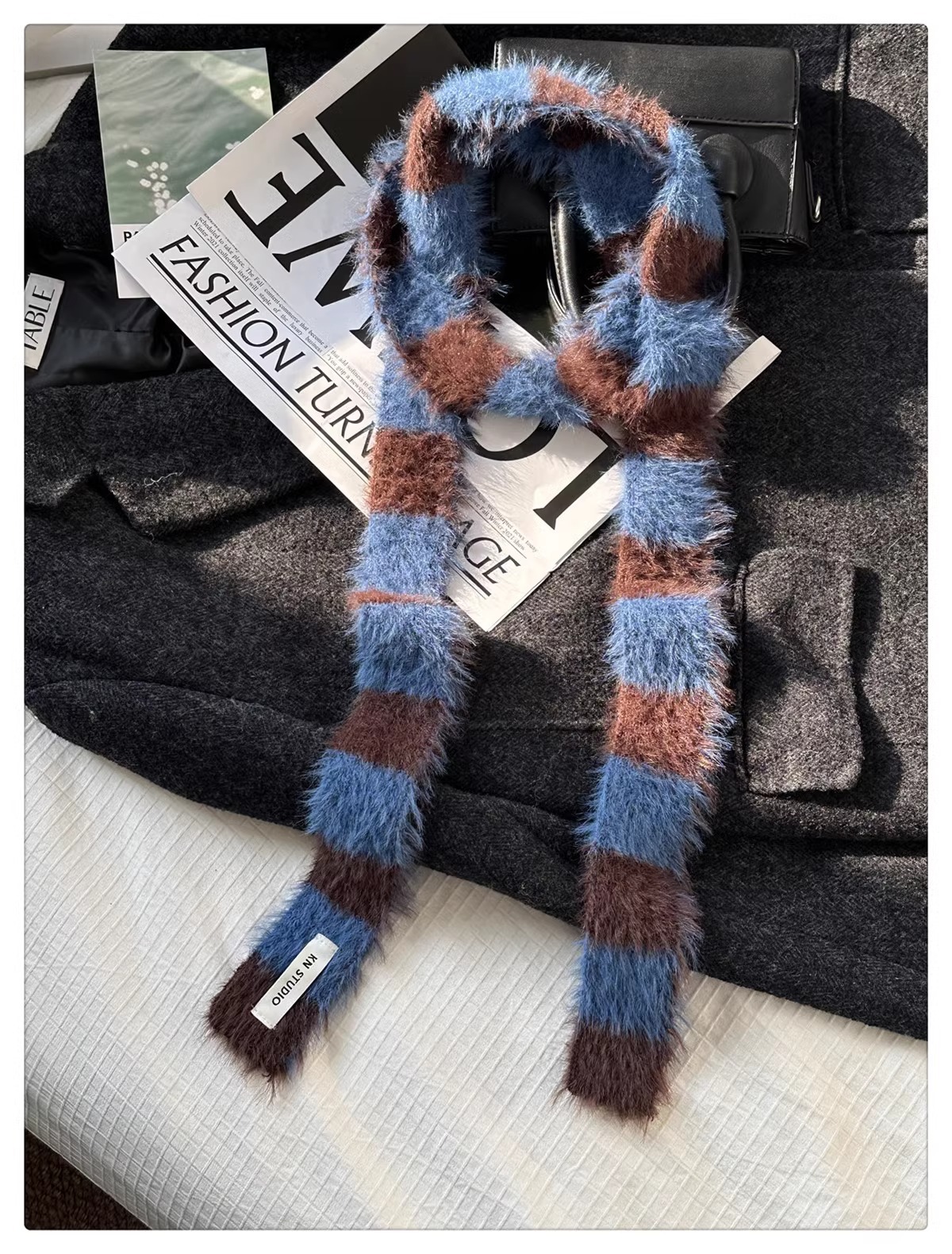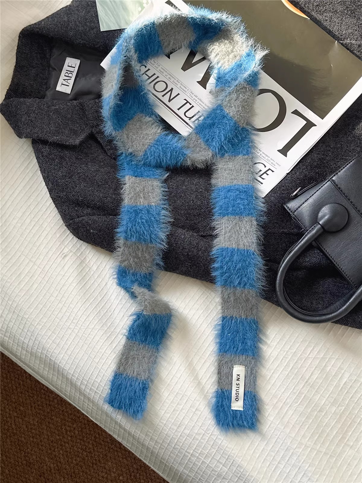 한국식 Ins 가을과 겨울 새로운 컨동굴 모양 얇은 좁은 긴 줄무늬 스카프 여성 밀레니엄 스타일 Y2K 핫 걸스 봉제 스카프스토어 가기