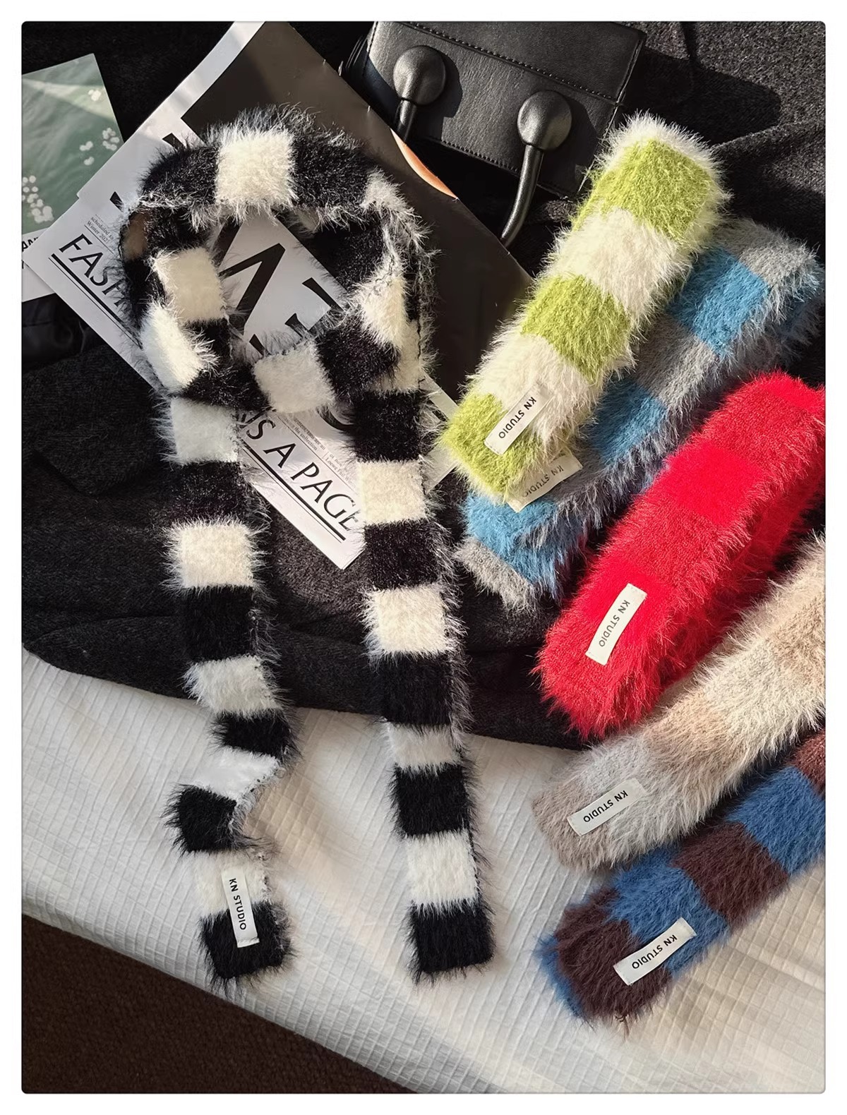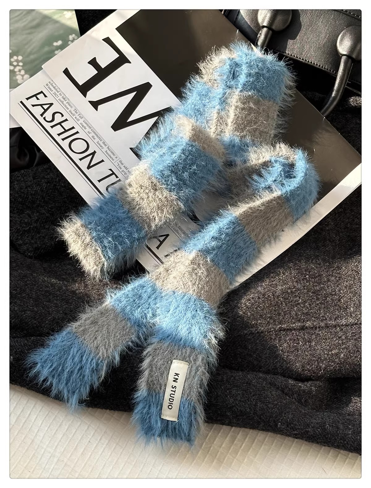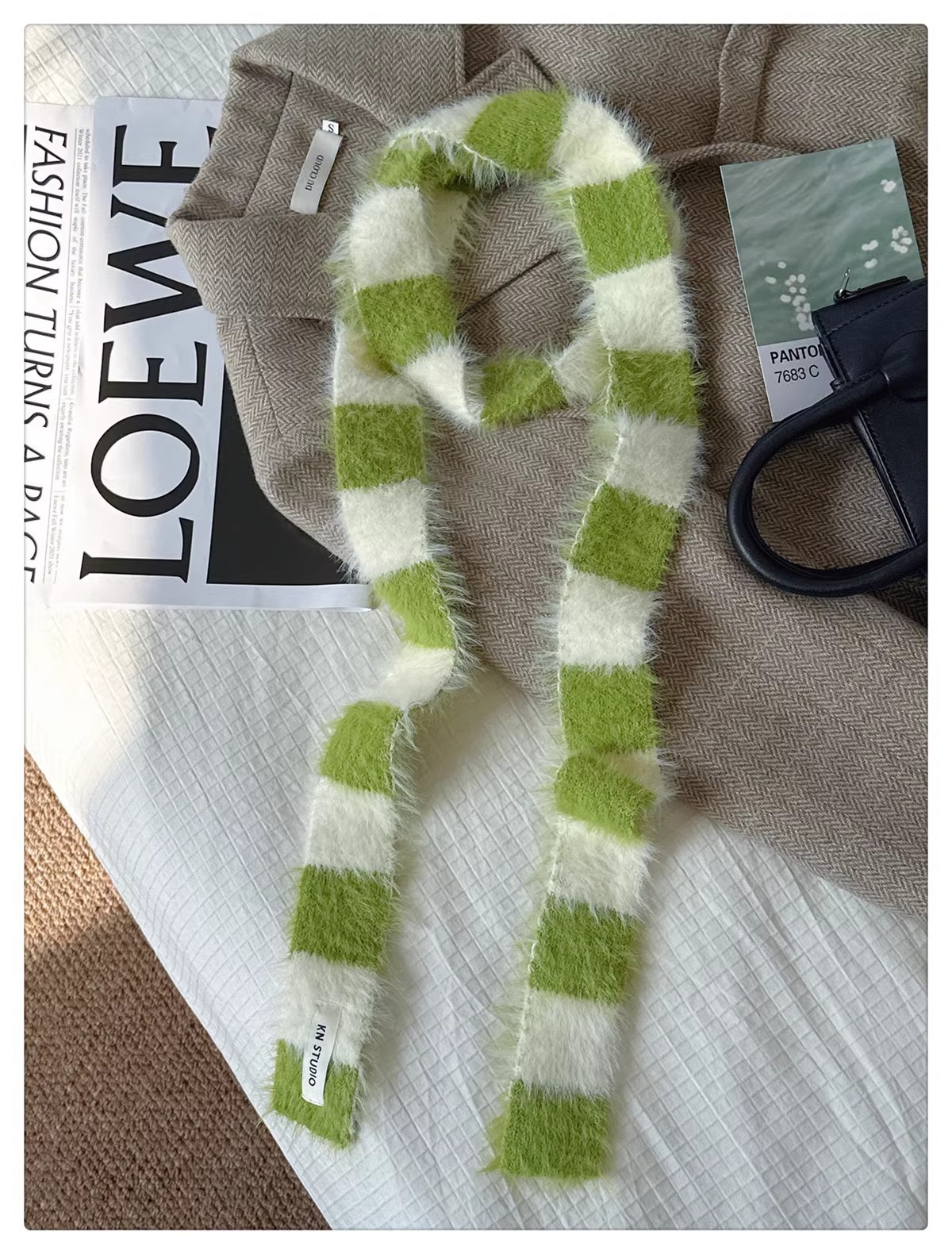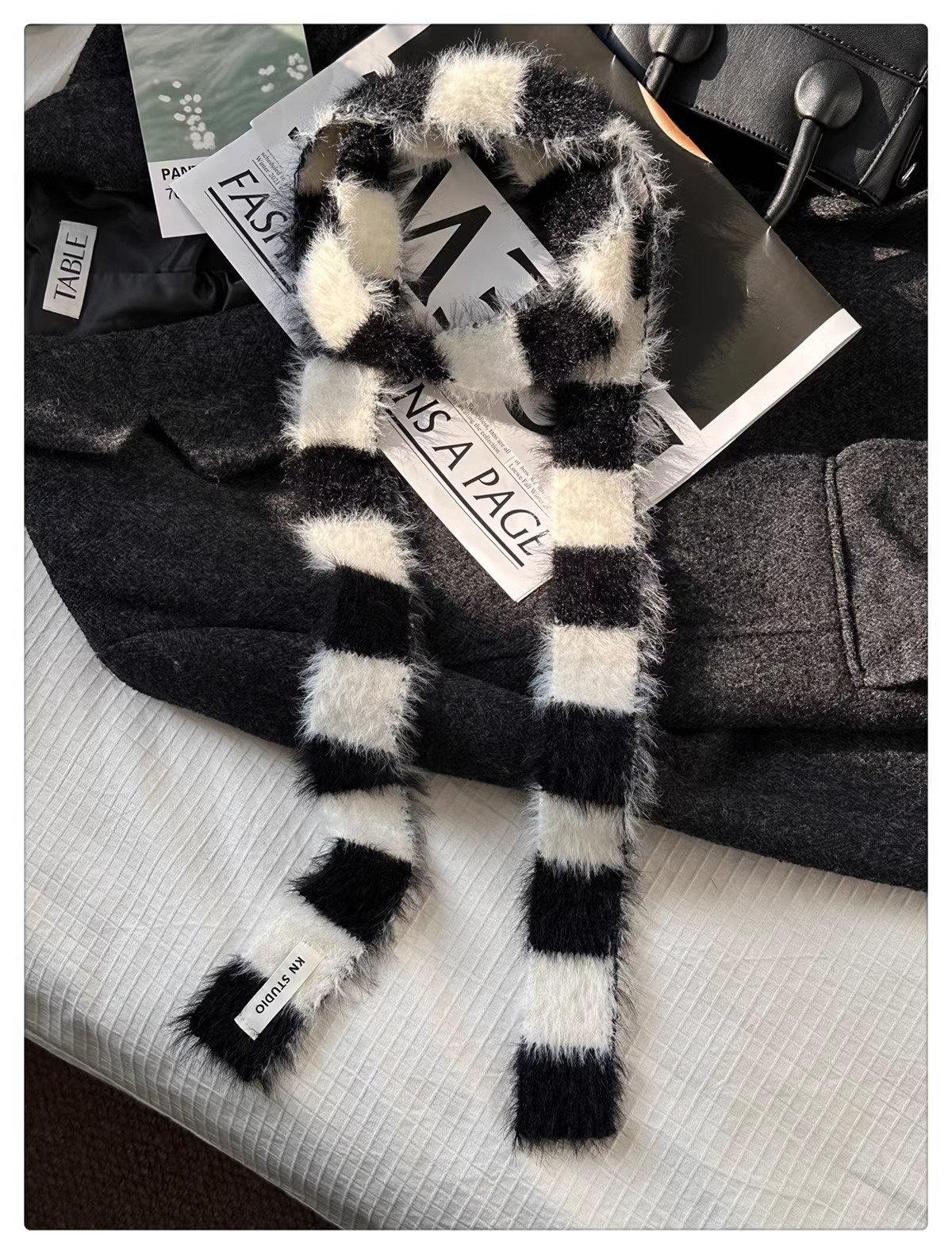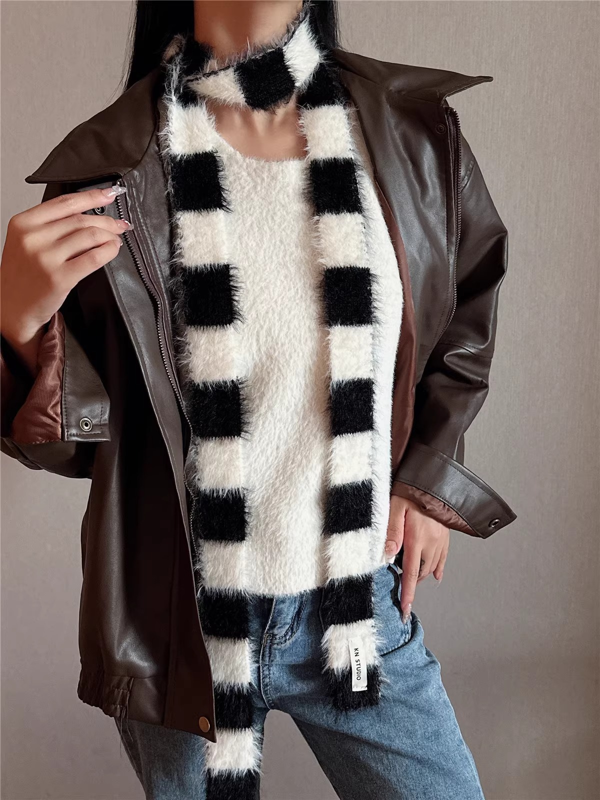 한국식 Ins 가을과 겨울 새로운 컨동굴 모양 얇은 좁은 긴 줄무늬 스카프 여성 밀레니엄 스타일 Y2K 핫 걸스 봉제 스카프스토어 가기