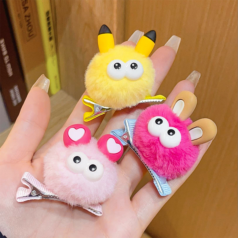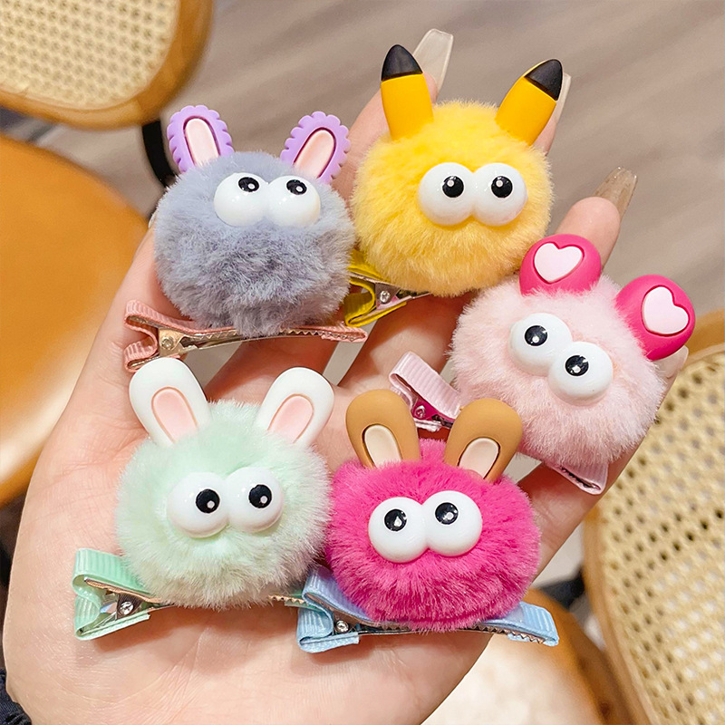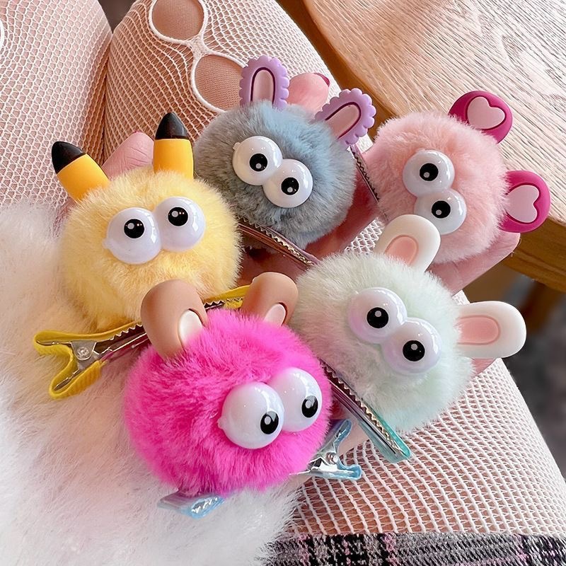 귀엽고 귀여운 귀털볼 머리핀, 오리발 클립, 소녀 도파민 머리 앞머리 클립, 달콤한 머리핀 헤어 액세서리