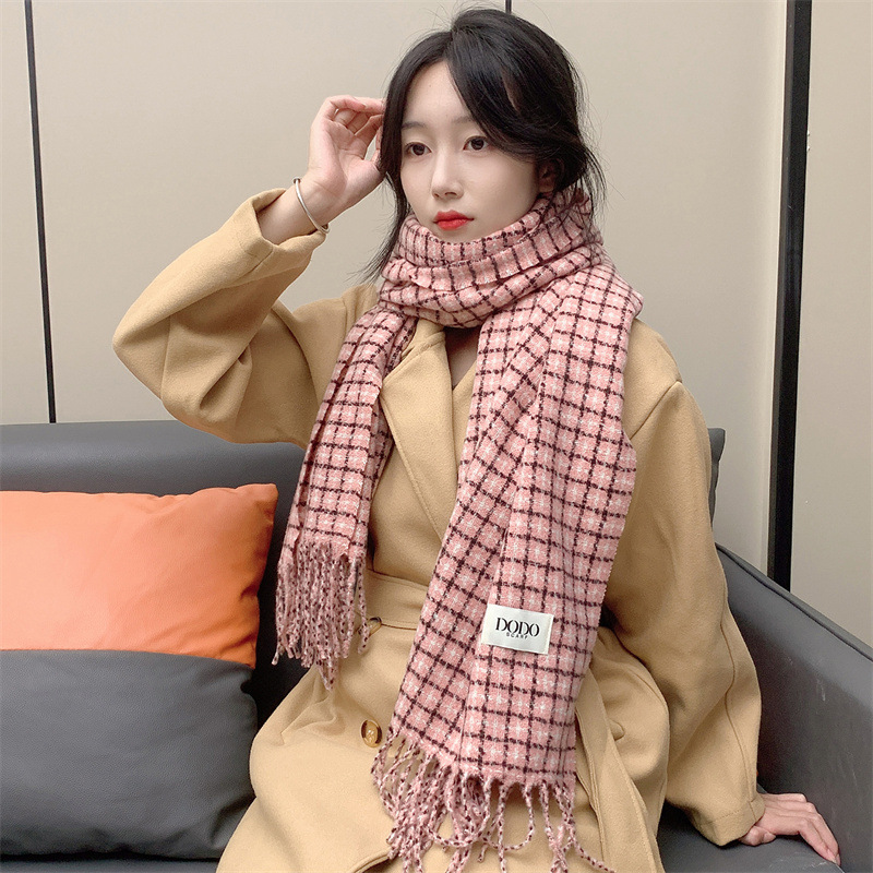 Ins 스타일 분위기 복고풍 학생 스카프 여성의 가을 2023 새로운 두꺼운 따뜻한 캐시미어 격자 무늬 스카프스토어 가기