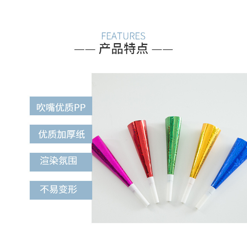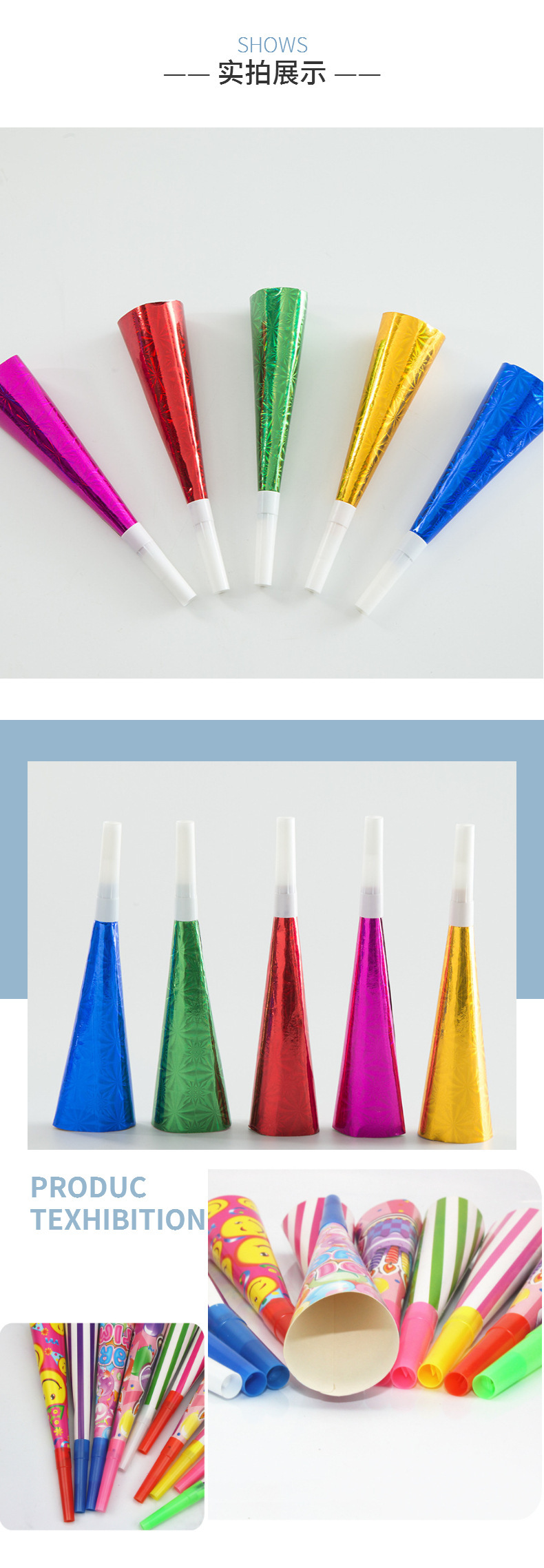 국경 간 뜨거운 판매 레이저 종이 큰 뿔 드래곤 휘파람 어린이 생일 파티 장난감 부트 스트랜드 소품스토어 가기