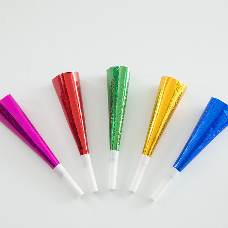 국경 간 뜨거운 판매 레이저 종이 큰 뿔 드래곤 휘파람 어린이 생일 파티 장난감 부트 스트랜드 소품
