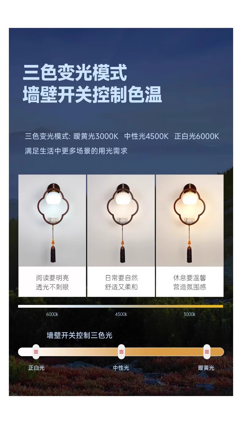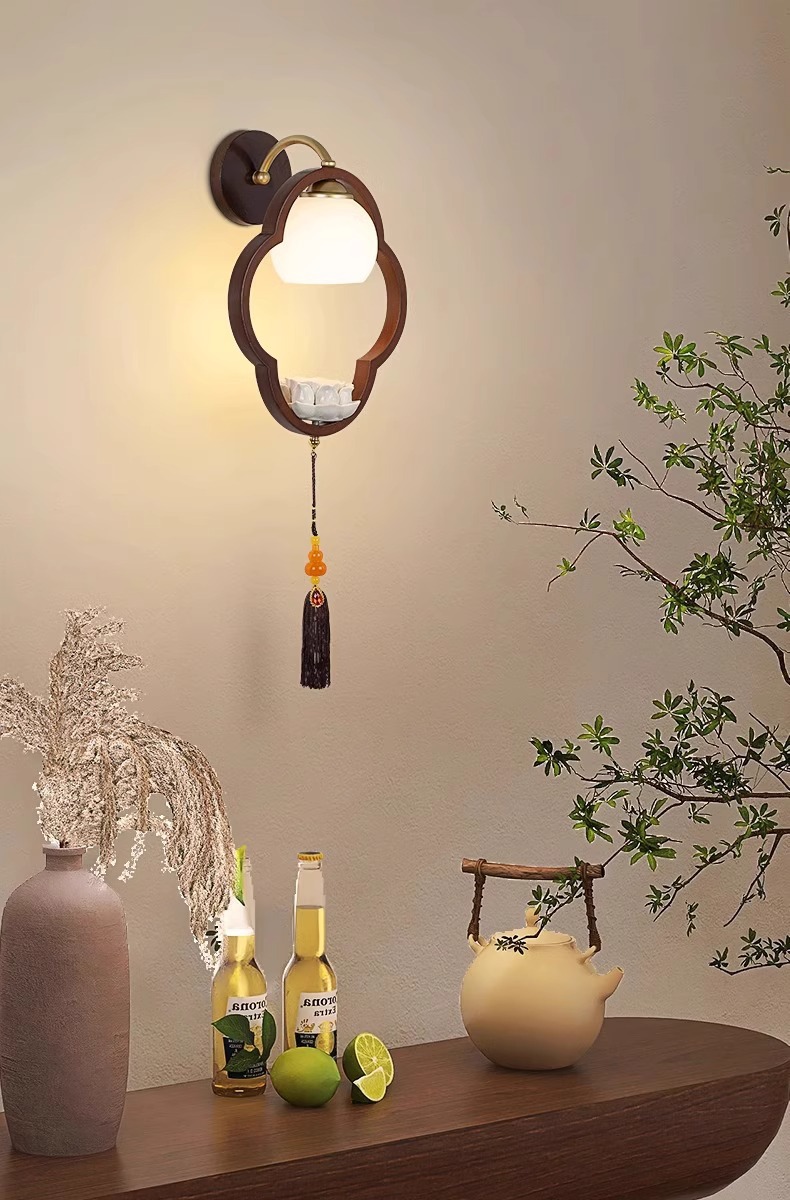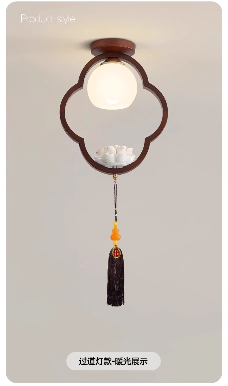 새로운 중국 스타일 솔리드 우드 침실 침실 벽 램프 중국 스타일 선 로터스 통로 거실 다실 연구 배경 벽 램프