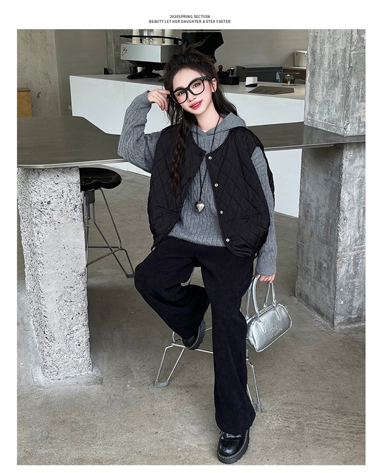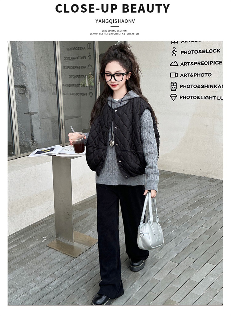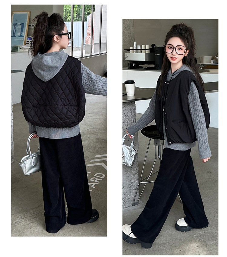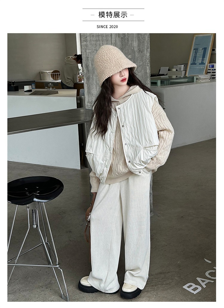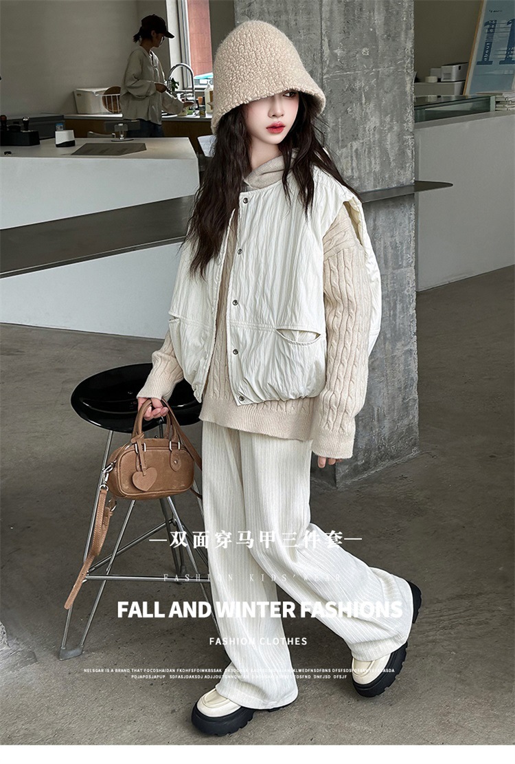 소녀 가을 겨울 스웨터 조끼 면화 패딩 세트 두꺼운 종다 어린이 겨울 패션 쿨 한국 3 피스 아동복스토어 가기