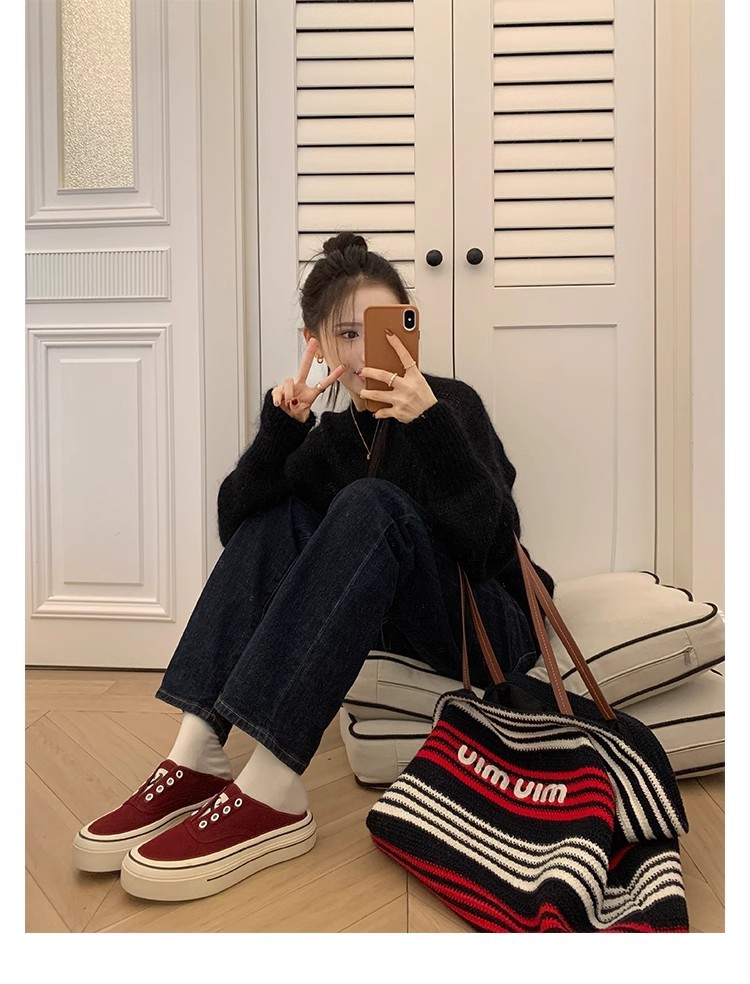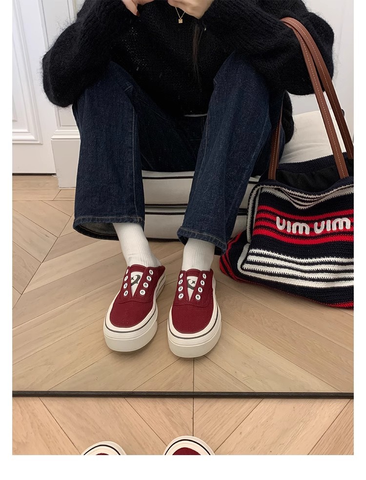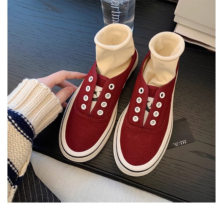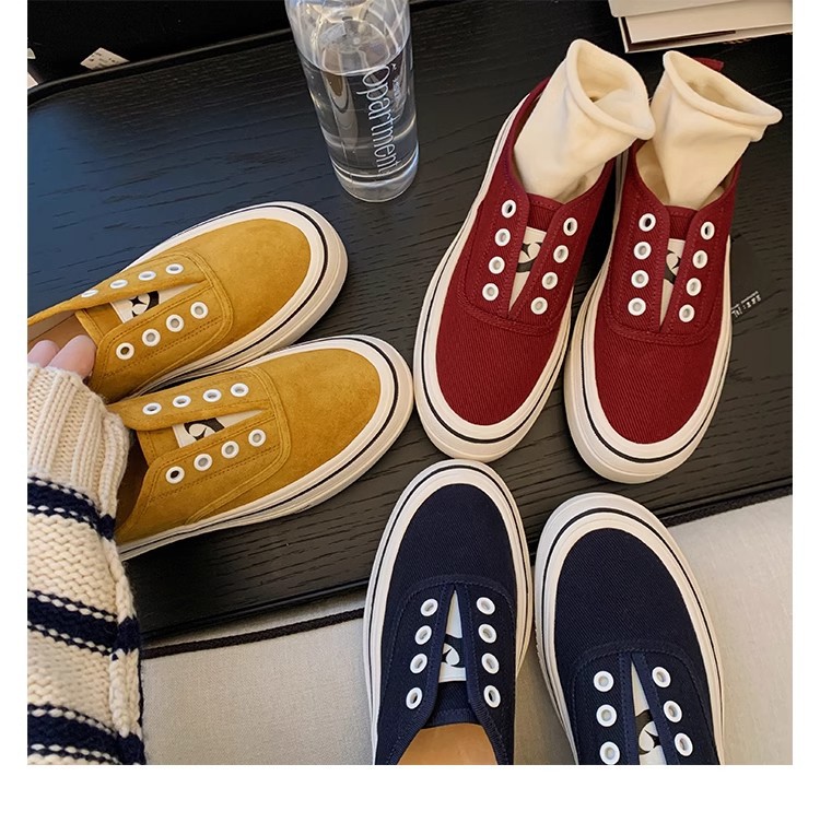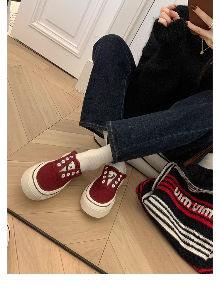 페달 둥근 머리 두꺼운 밑창 조커 캐주얼 조커 보드 신발 두꺼운 밑창 캔버스 신발 봄과 가을 새스토어 가기