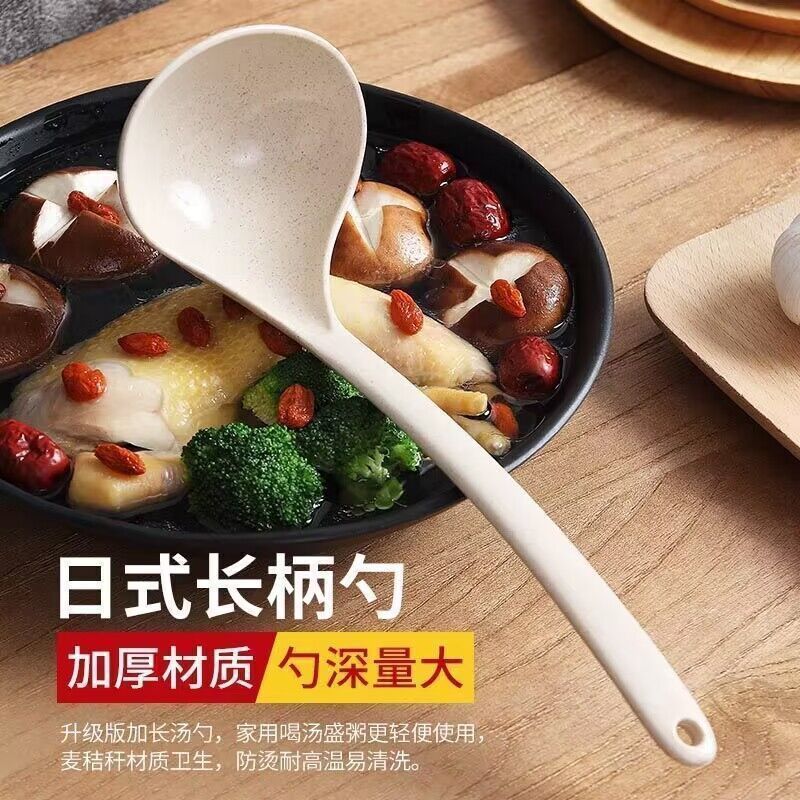두꺼운 고온 저항성 밀 섬유 긴 손잡이 큰 특종 수프 숟가락 가정용 죽 쌀 죽 부엌 일본식 작은 숟가락