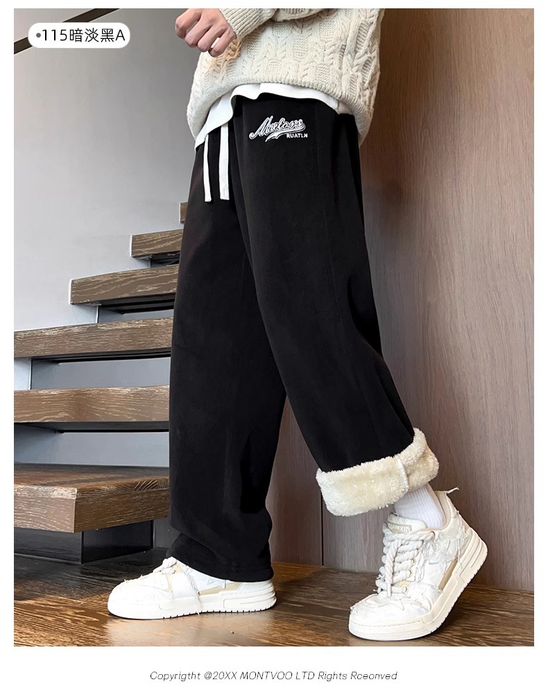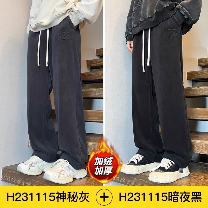 NASA 양가죽 바지 소년 겨울 2024 새로운 기모 두꺼운 캐주얼 코튼 바지 가을과 겨울 스트레이트 바지