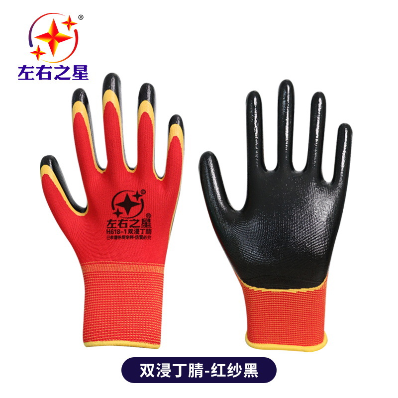 왼쪽과 오른쪽 별 Ding 청나라 내유성 미끄럼 방지 장갑 두껍고 튼튼한 통기성 작업 사이트 노동 보호 장갑스토어 가기