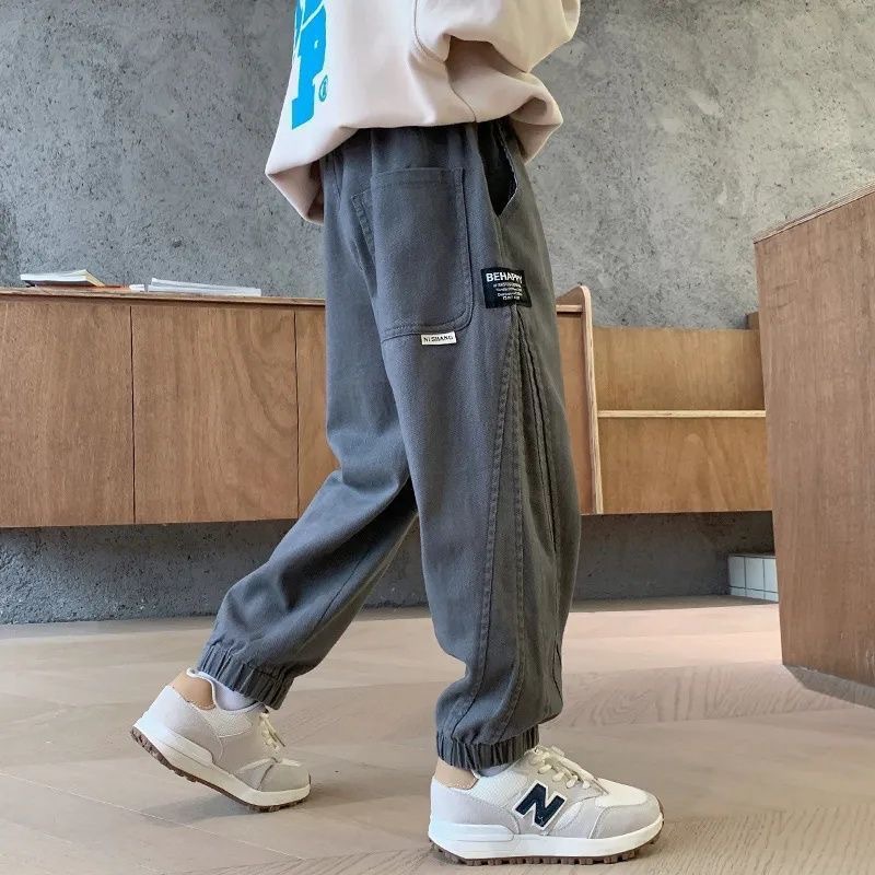 소년 캐주얼 바지 봄과 가을 2024 새로운 종다 어린이 느슨한 폭발 거리 긴 바지 아동복 어린이 유행 바지스토어 가기