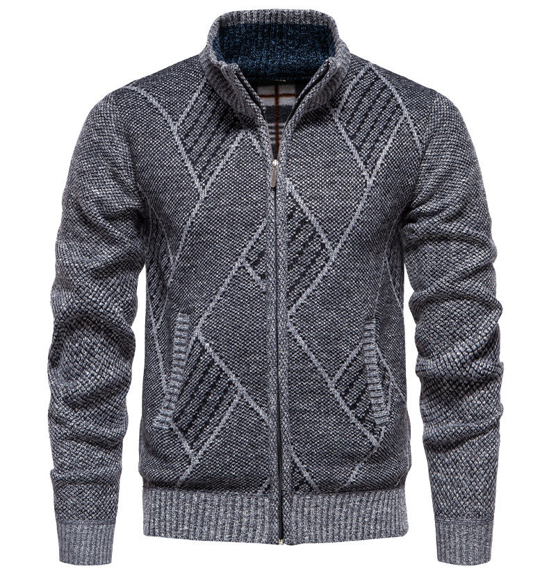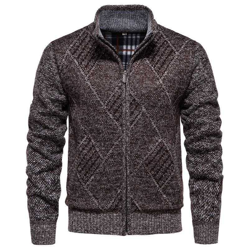 가을과 겨울 남자 캐주얼 칼라 지퍼 니트 카디건 재킷 젊고 중년 기모 남자 재킷 스웨터 남자