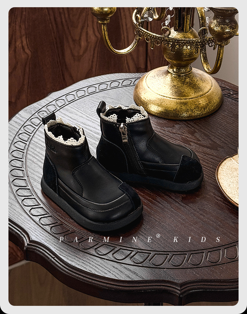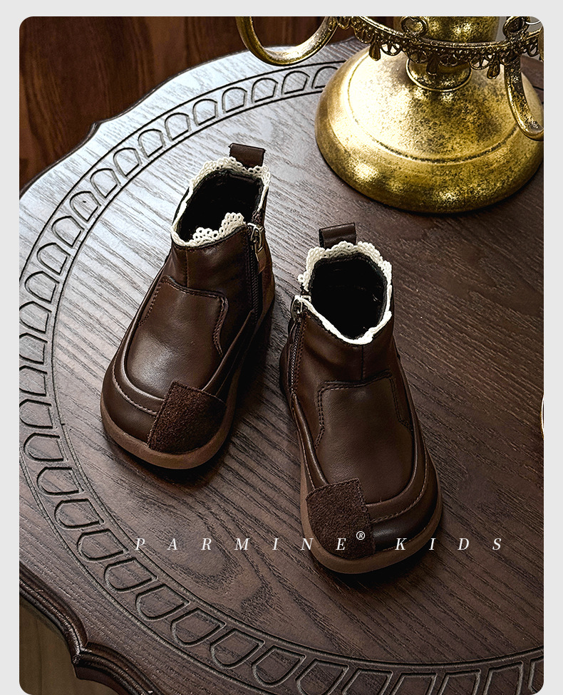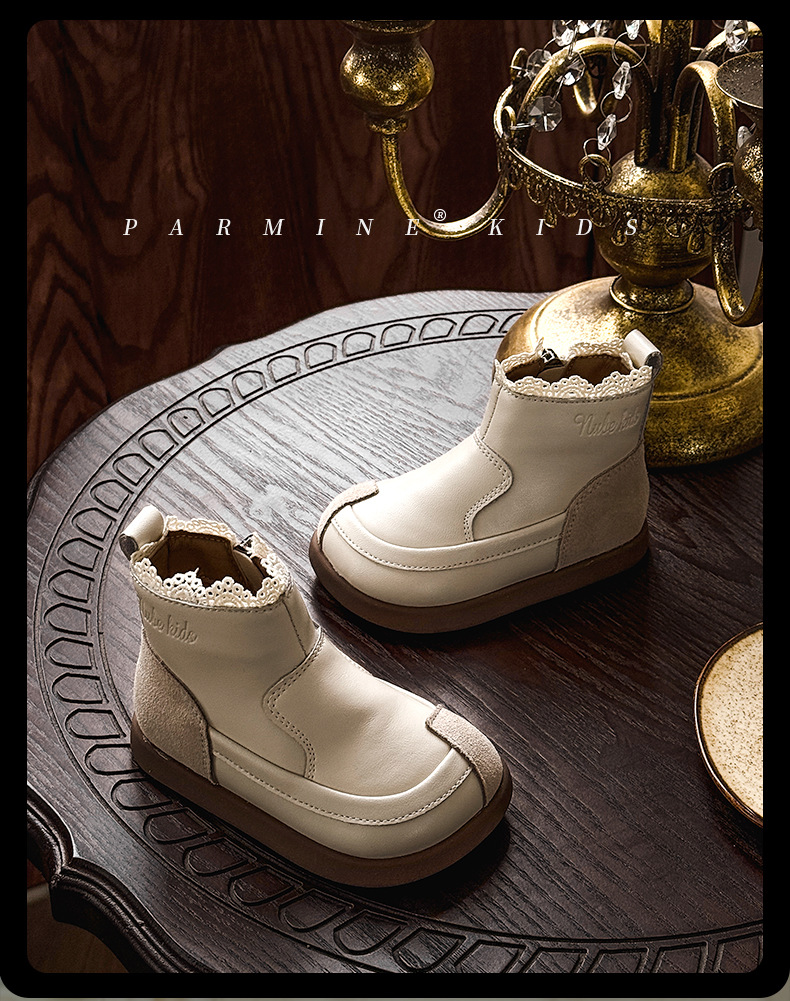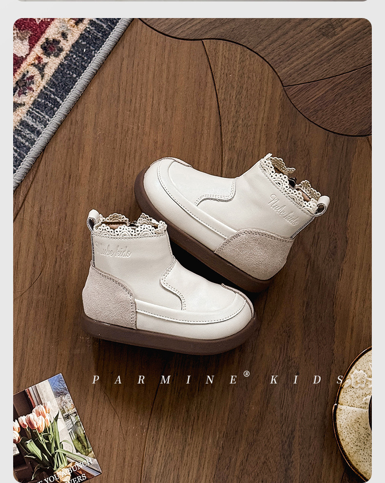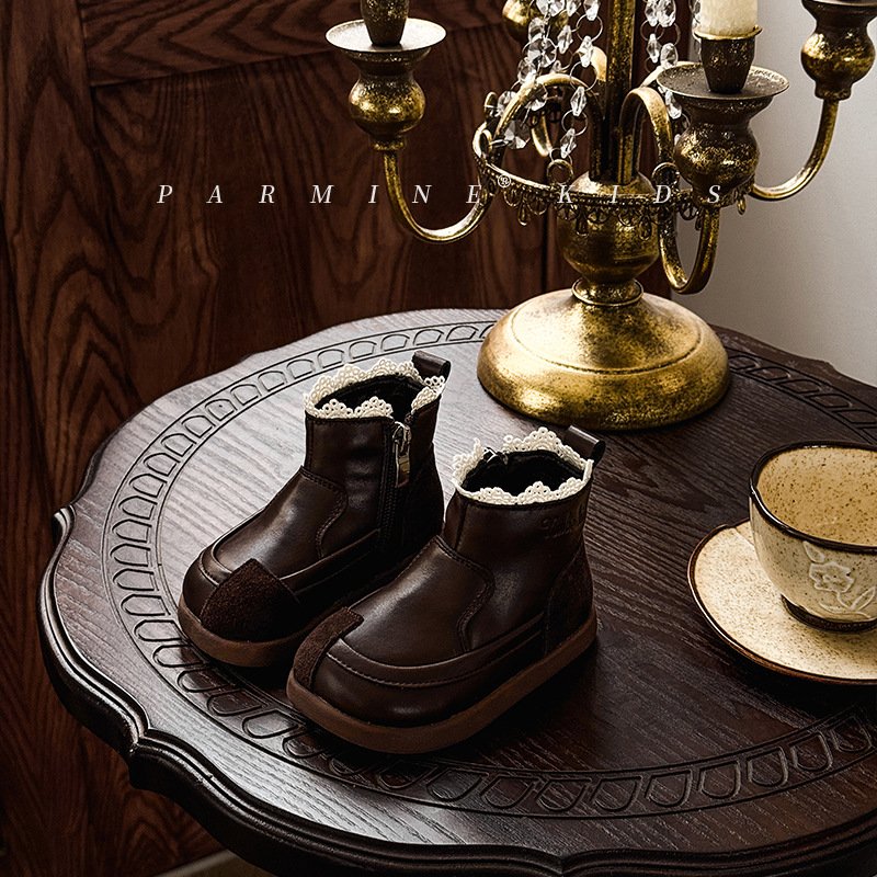 가을 겨울 2025 새로운 스타일의 소녀를위한 정품 가죽 아기 소녀 복고풍 스타일 공주 면화 부츠 플러스 벨벳 두꺼운 작은 가죽 부츠