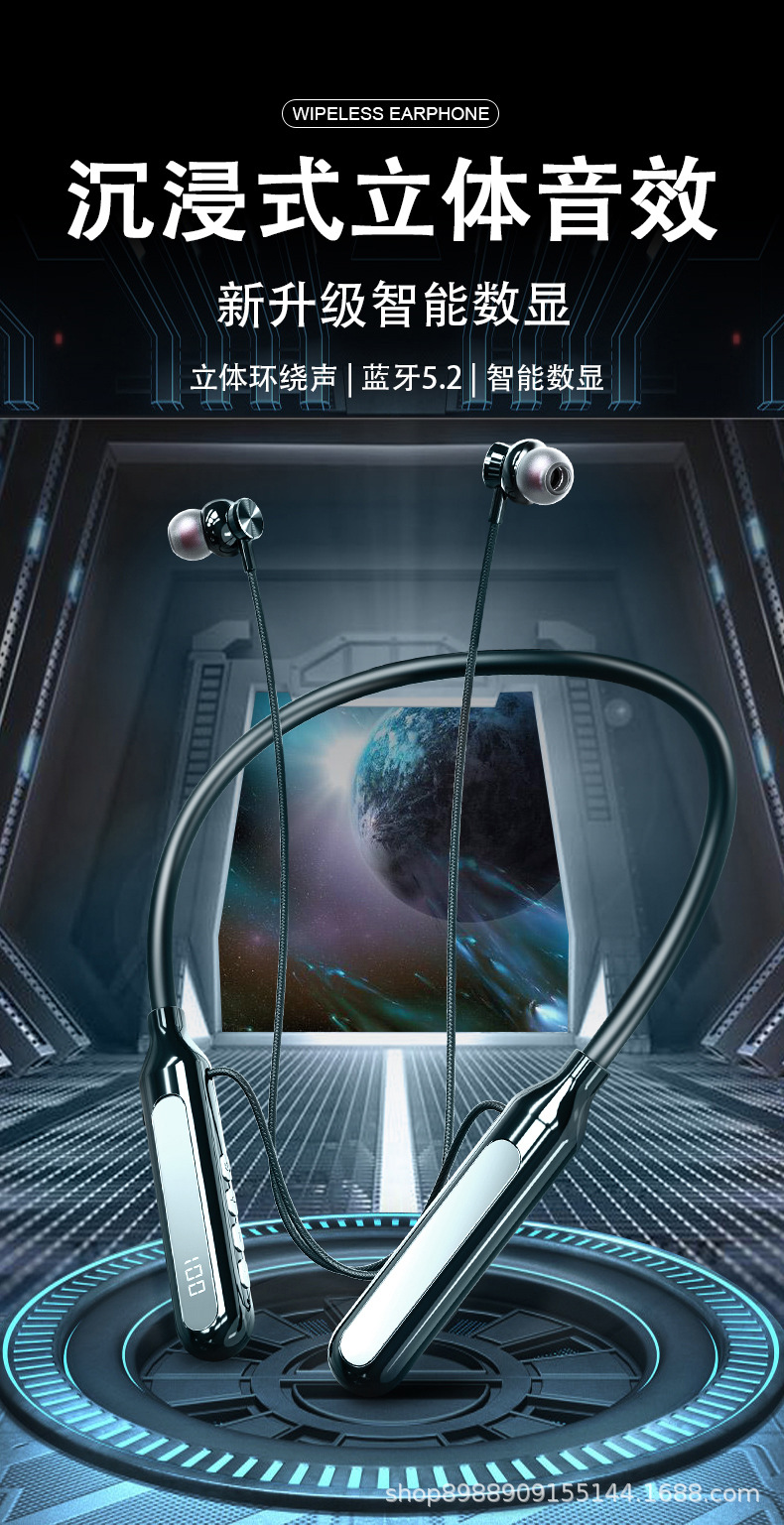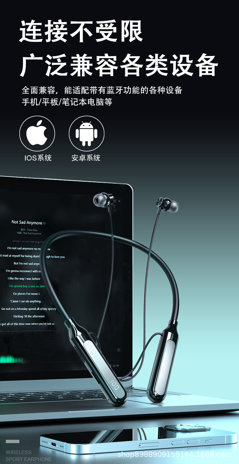 새로운 무선 목에 매달린 블루투스 헤드셋 긴 내구성 대기 인 귀 소음 감소 콜 스포츠 유니버설