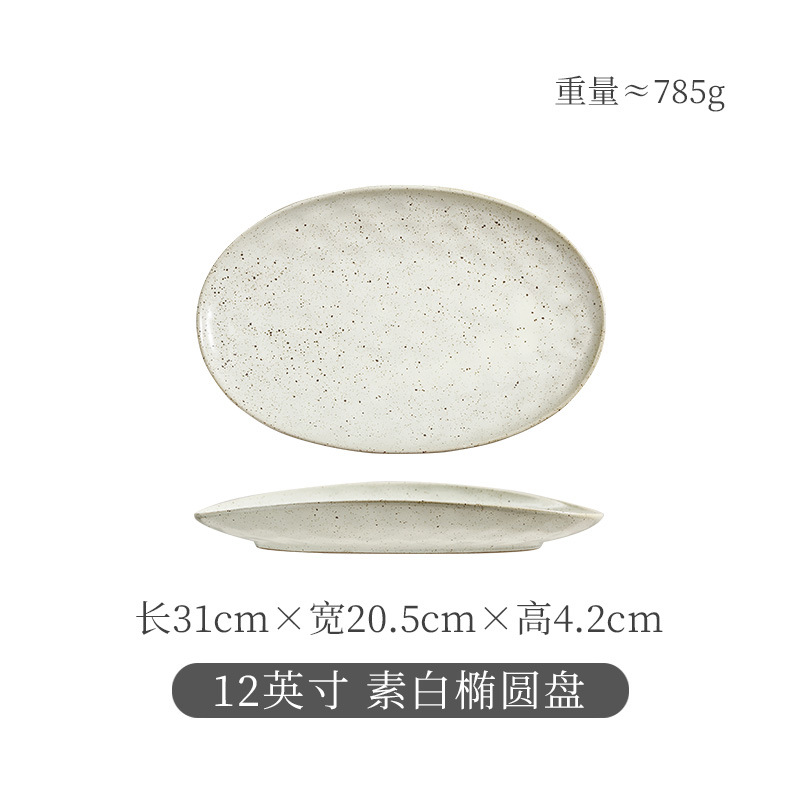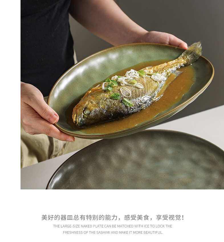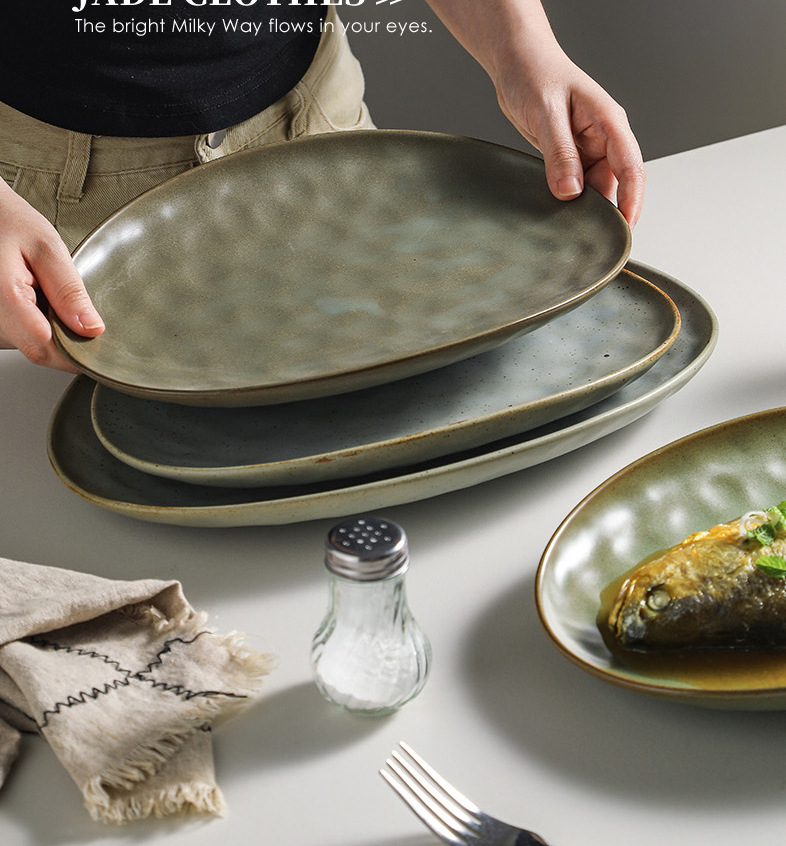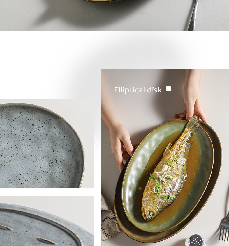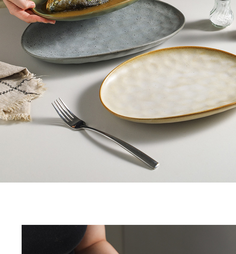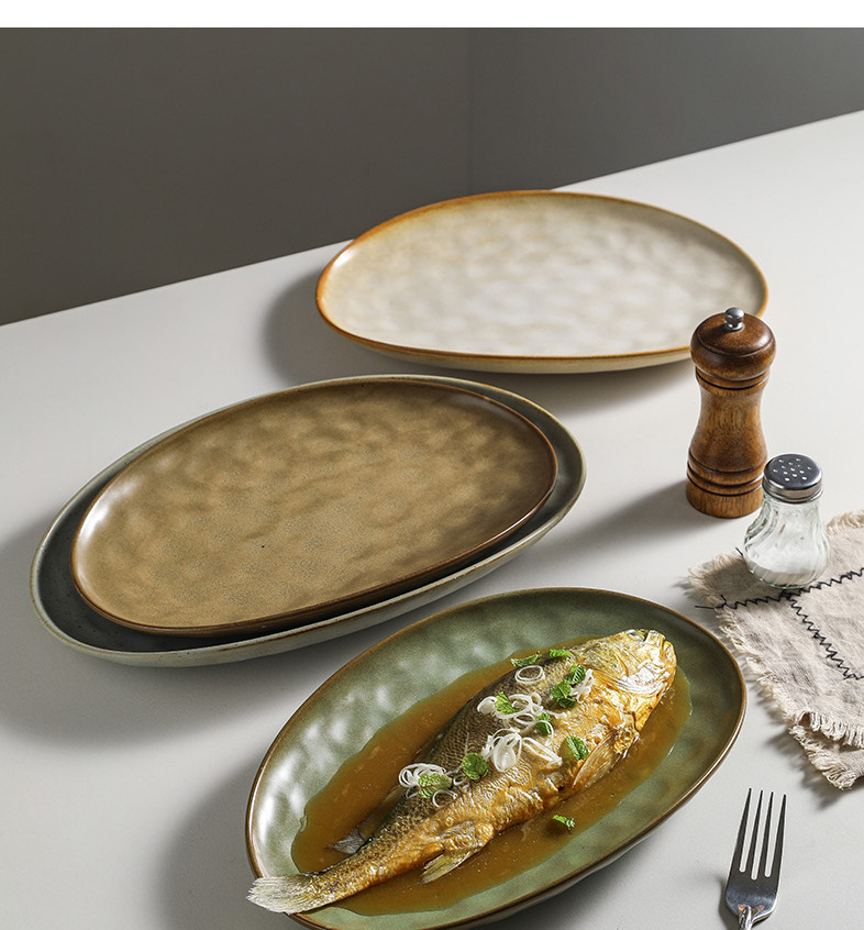 일본식 석기 생선 접시 식기 세라믹 플레이트 빈티지 디너 플레이트 접시 샐러드 플레이트 파스타 플레이트 타원형 차가운 요리