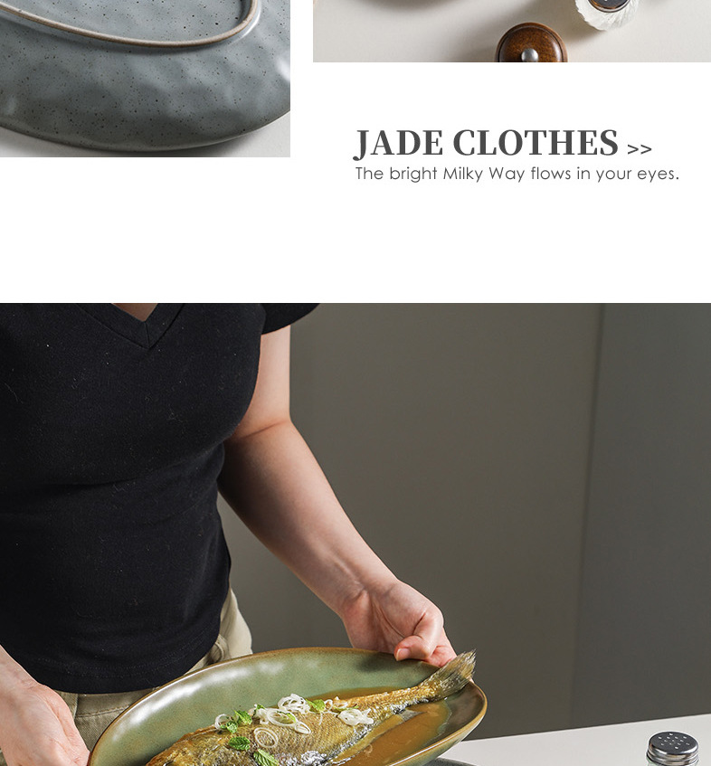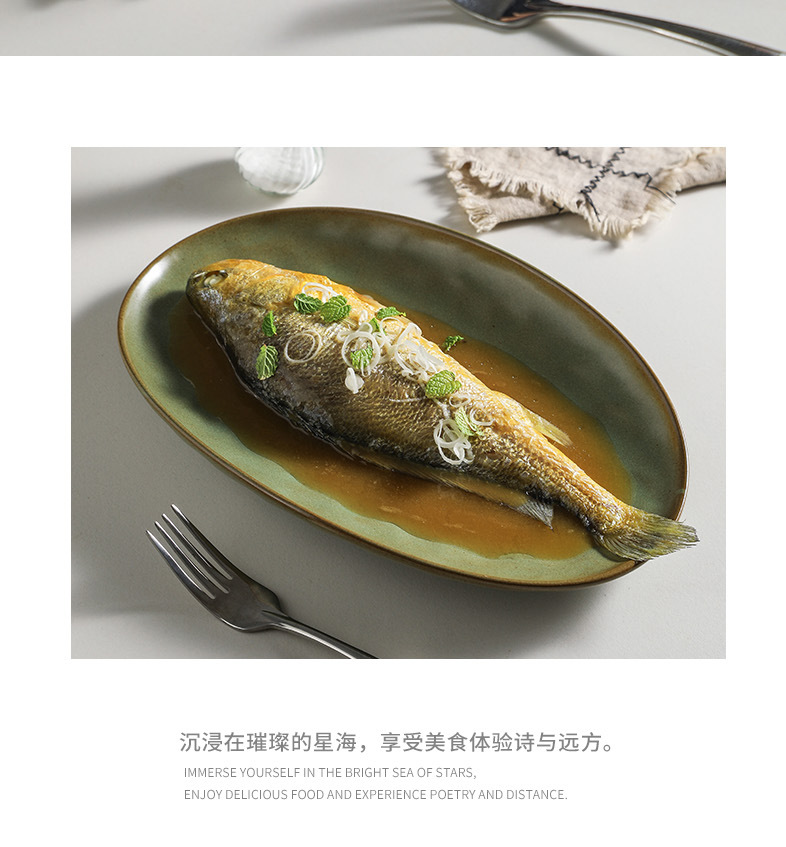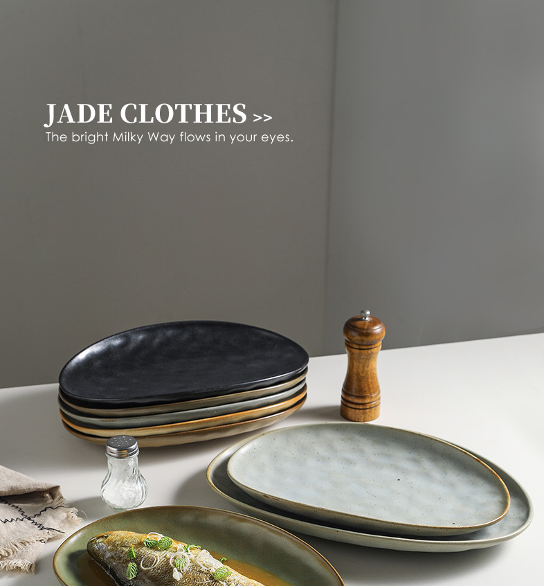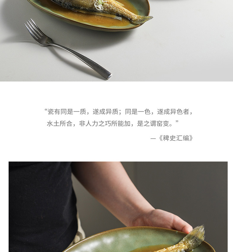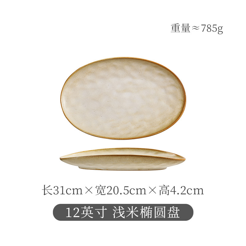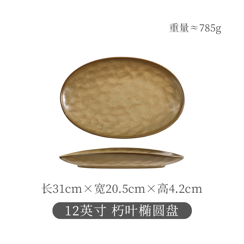 일본식 석기 생선 접시 식기 세라믹 플레이트 빈티지 디너 플레이트 접시 샐러드 플레이트 파스타 플레이트 타원형 차가운 요리
