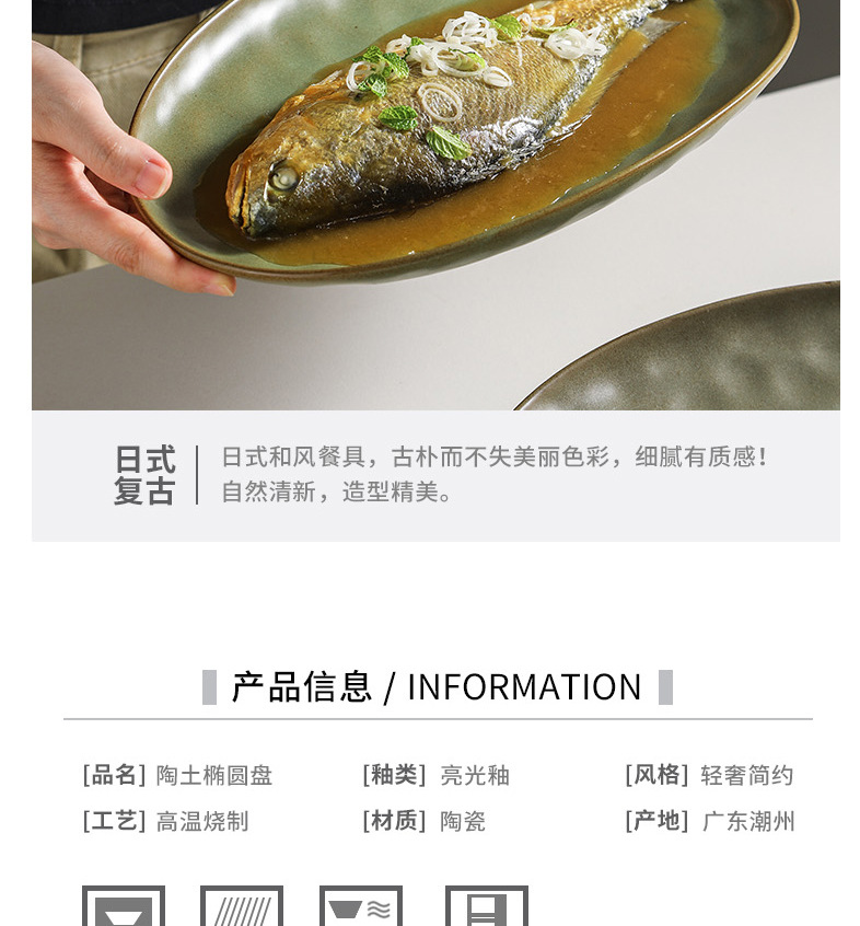 일본식 석기 생선 접시 식기 세라믹 플레이트 빈티지 디너 플레이트 접시 샐러드 플레이트 파스타 플레이트 타원형 차가운 요리스토어 가기