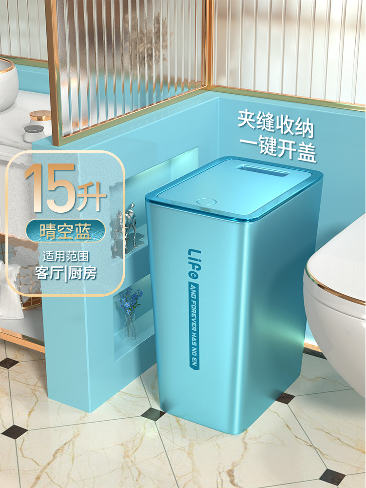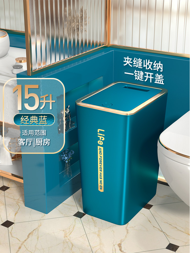 휴지통 수 대용량 가정용 2024 새로운 스타일 가벼운 고급 거실 주방 욕실 화장실 뚜껑 프레스 유형 Dixuan
