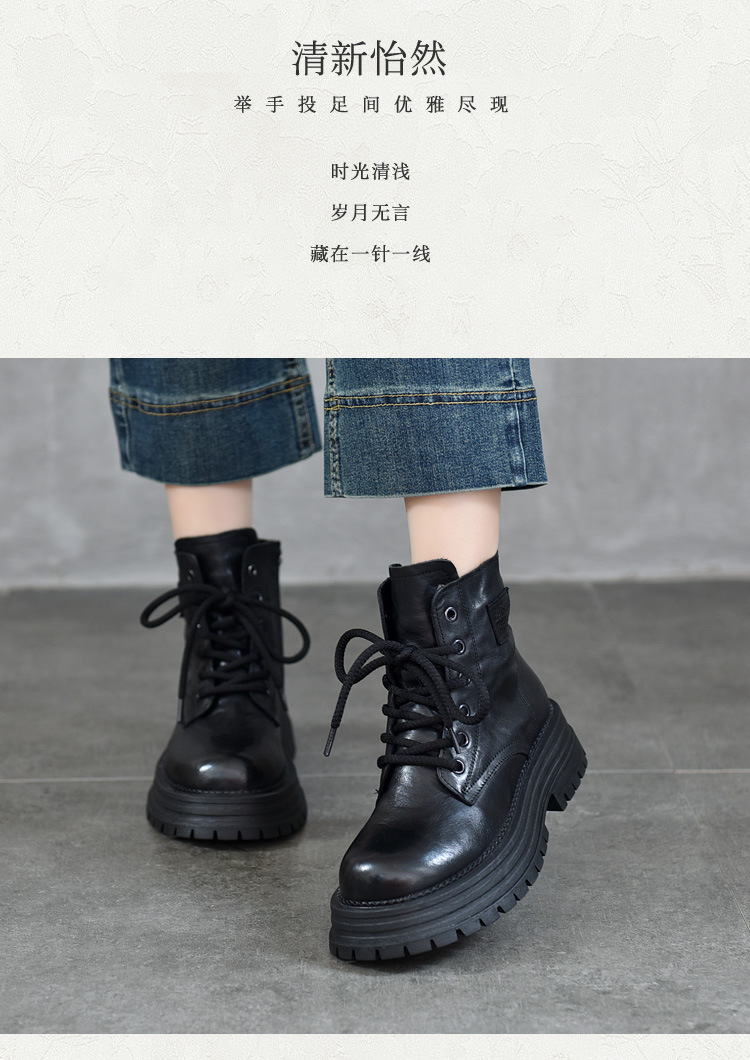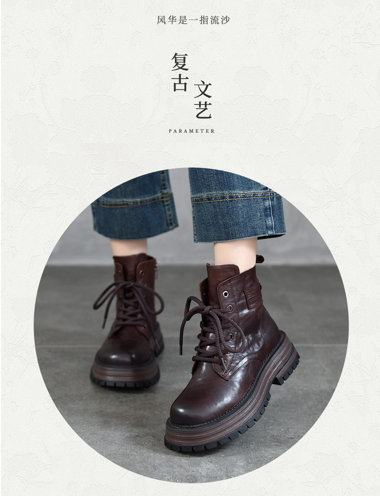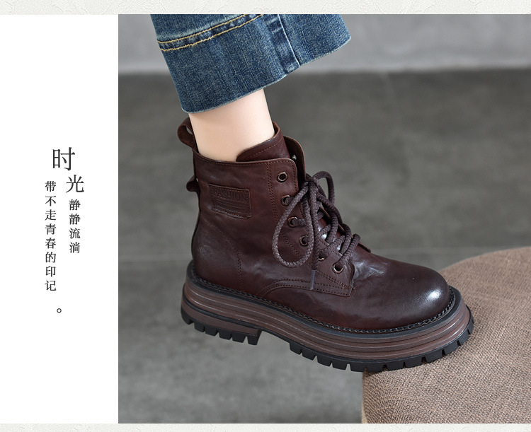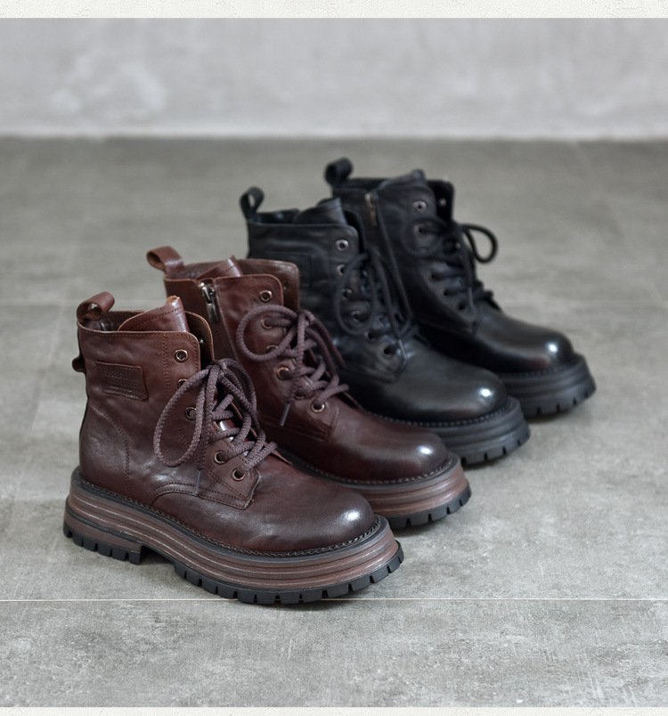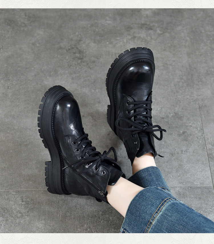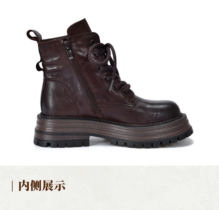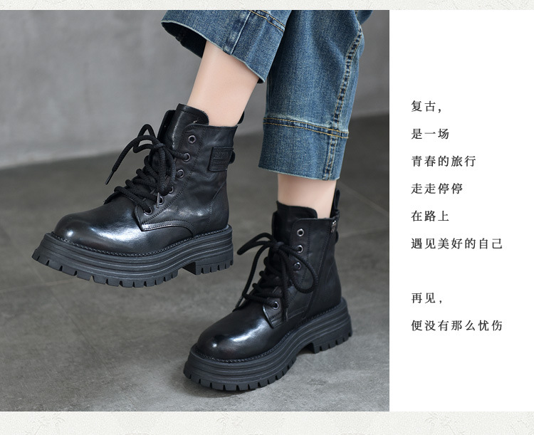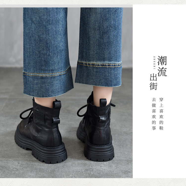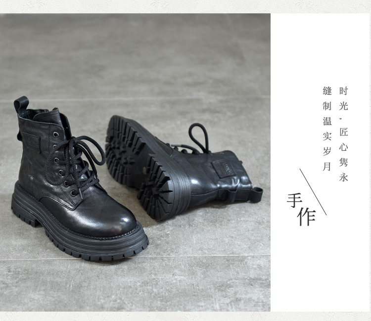 【특가 165】천연 가죽 부츠 손으로 만든 무늬 라운드 토 숏부츠 여성용 사이드 지퍼 마틴 부츠 소가죽 숏부츠스토어 가기