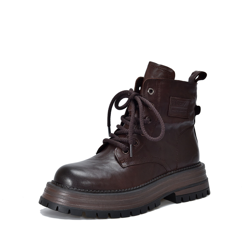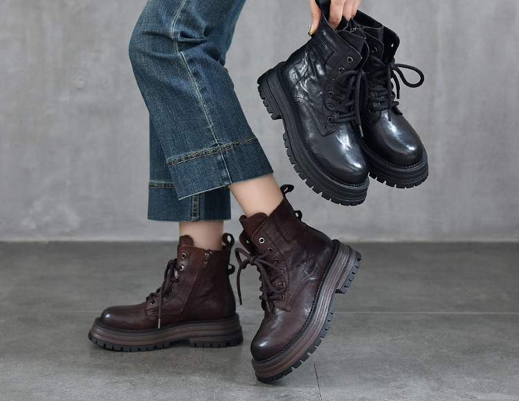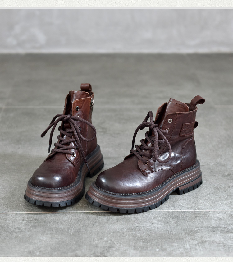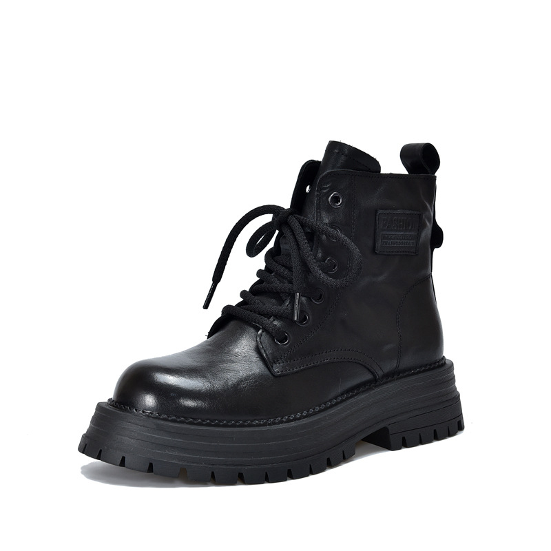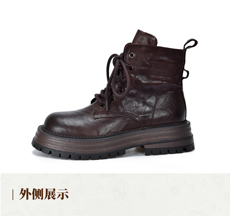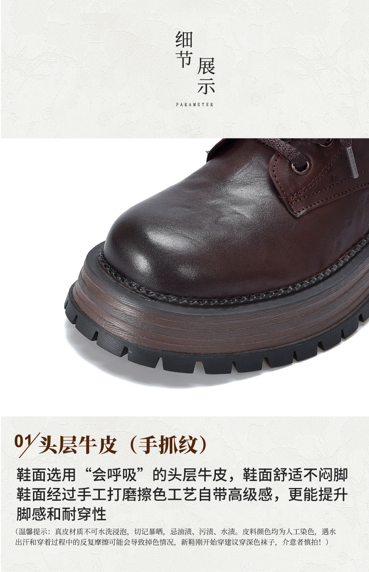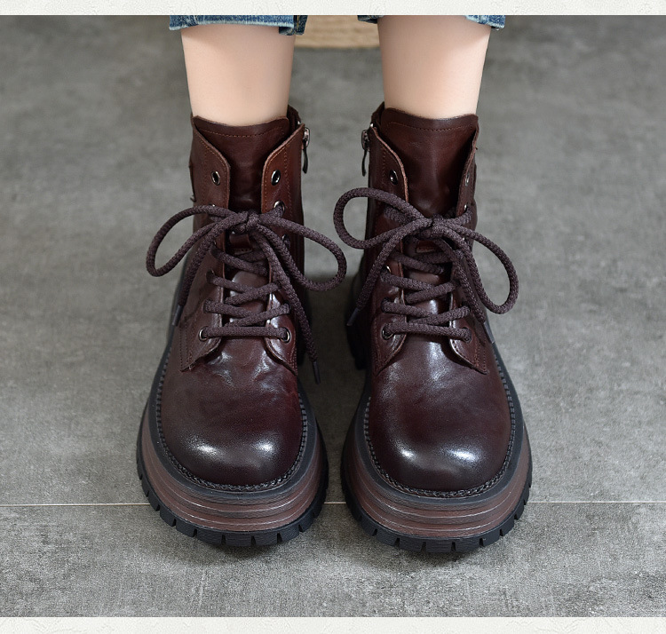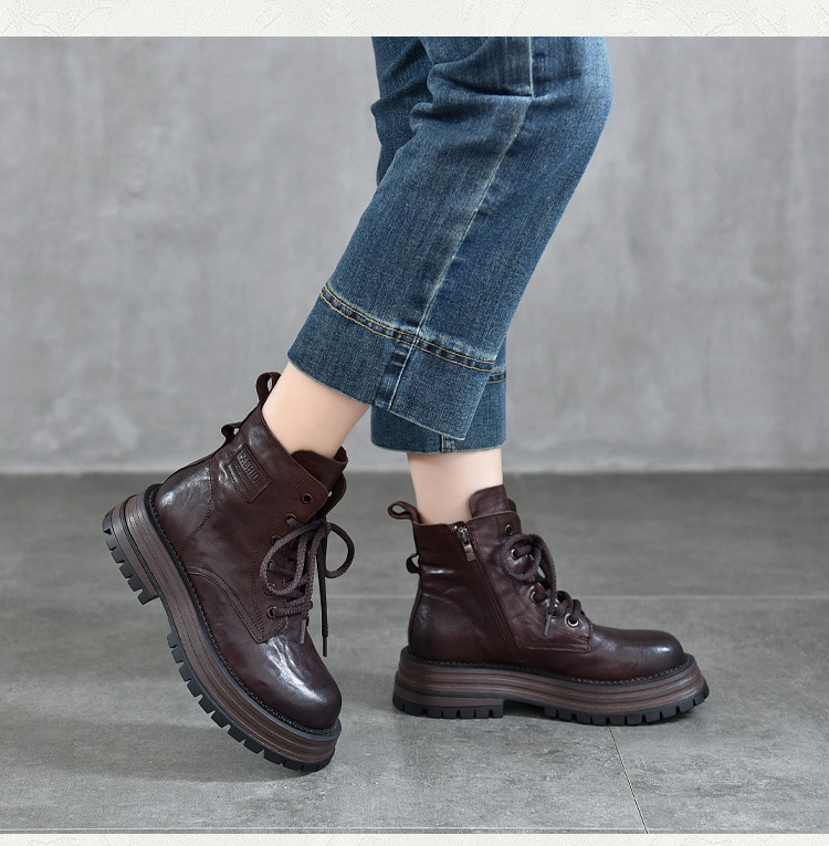 【특가 165】천연 가죽 부츠 손으로 만든 무늬 라운드 토 숏부츠 여성용 사이드 지퍼 마틴 부츠 소가죽 숏부츠스토어 가기