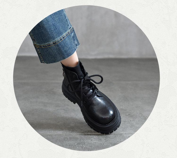 【특가 165】천연 가죽 부츠 손으로 만든 무늬 라운드 토 숏부츠 여성용 사이드 지퍼 마틴 부츠 소가죽 숏부츠