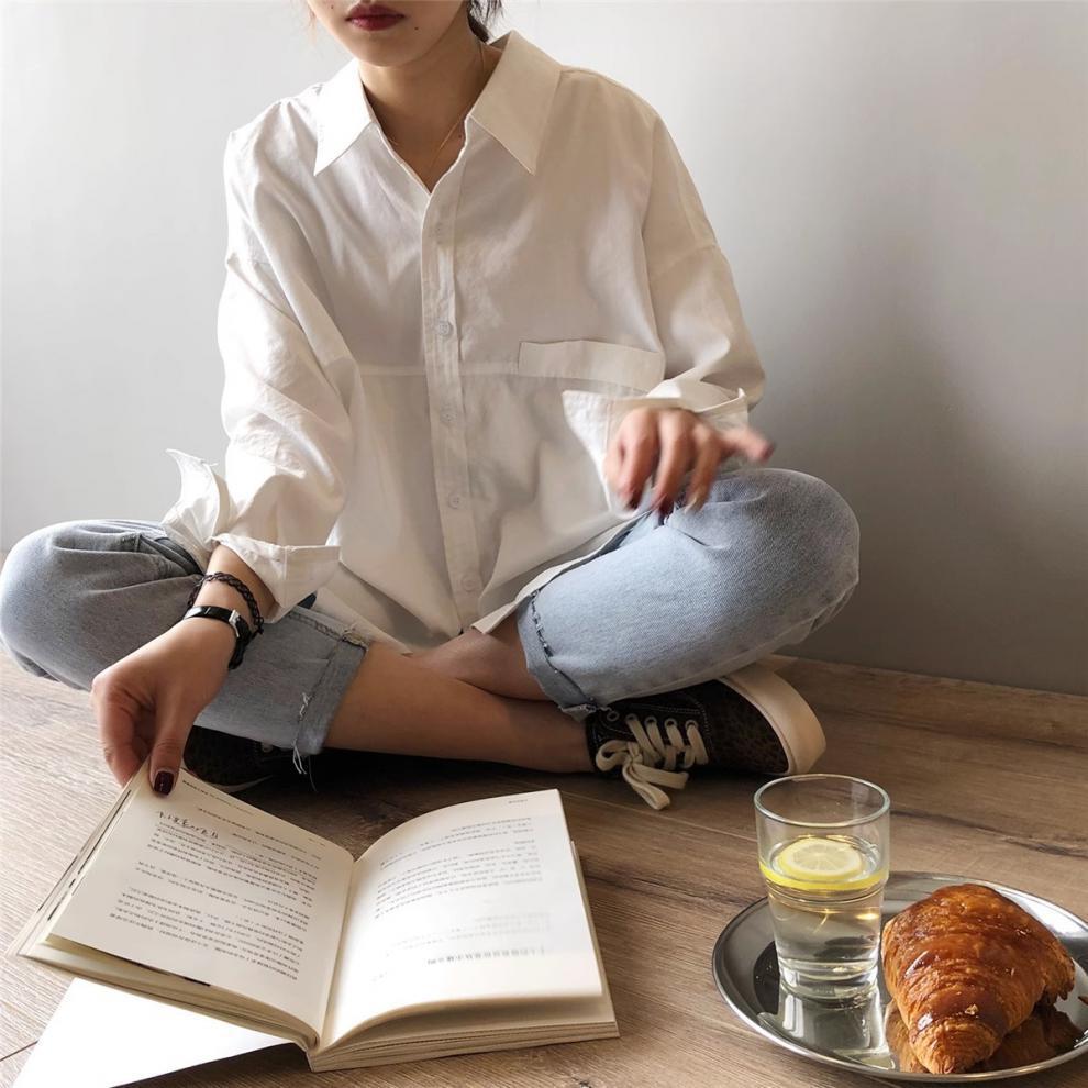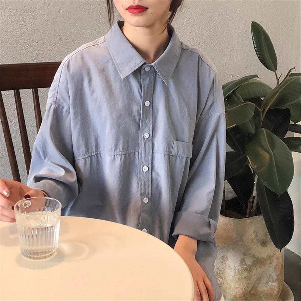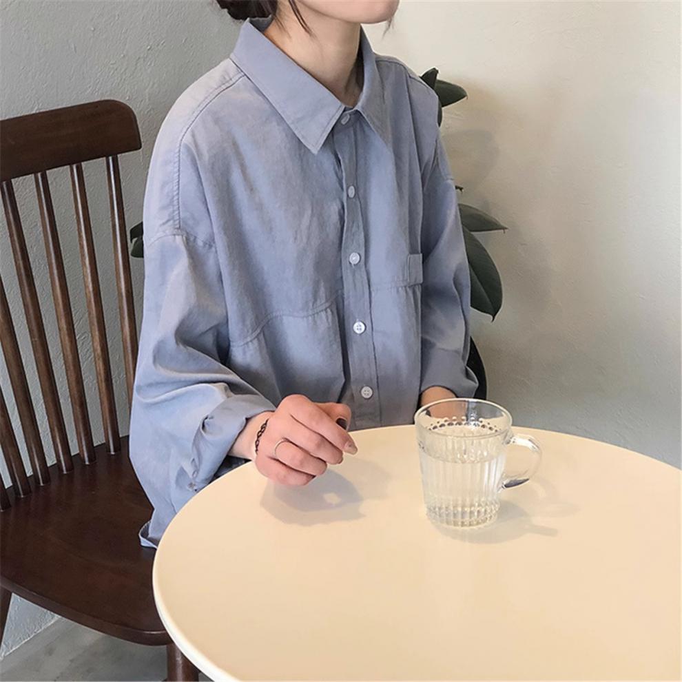 여성용 면 디자인 틈새 셔츠, 가을 신상 한국 스타일 루즈한 긴팔 복고풍 셔츠, 학생용 상의, 다용도스토어 가기