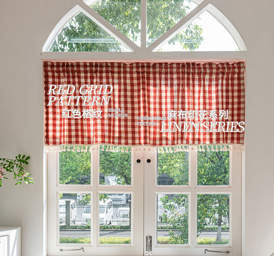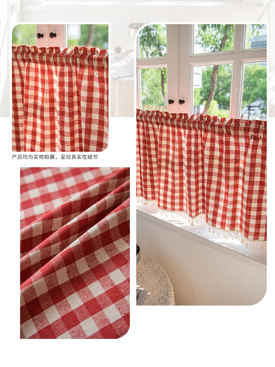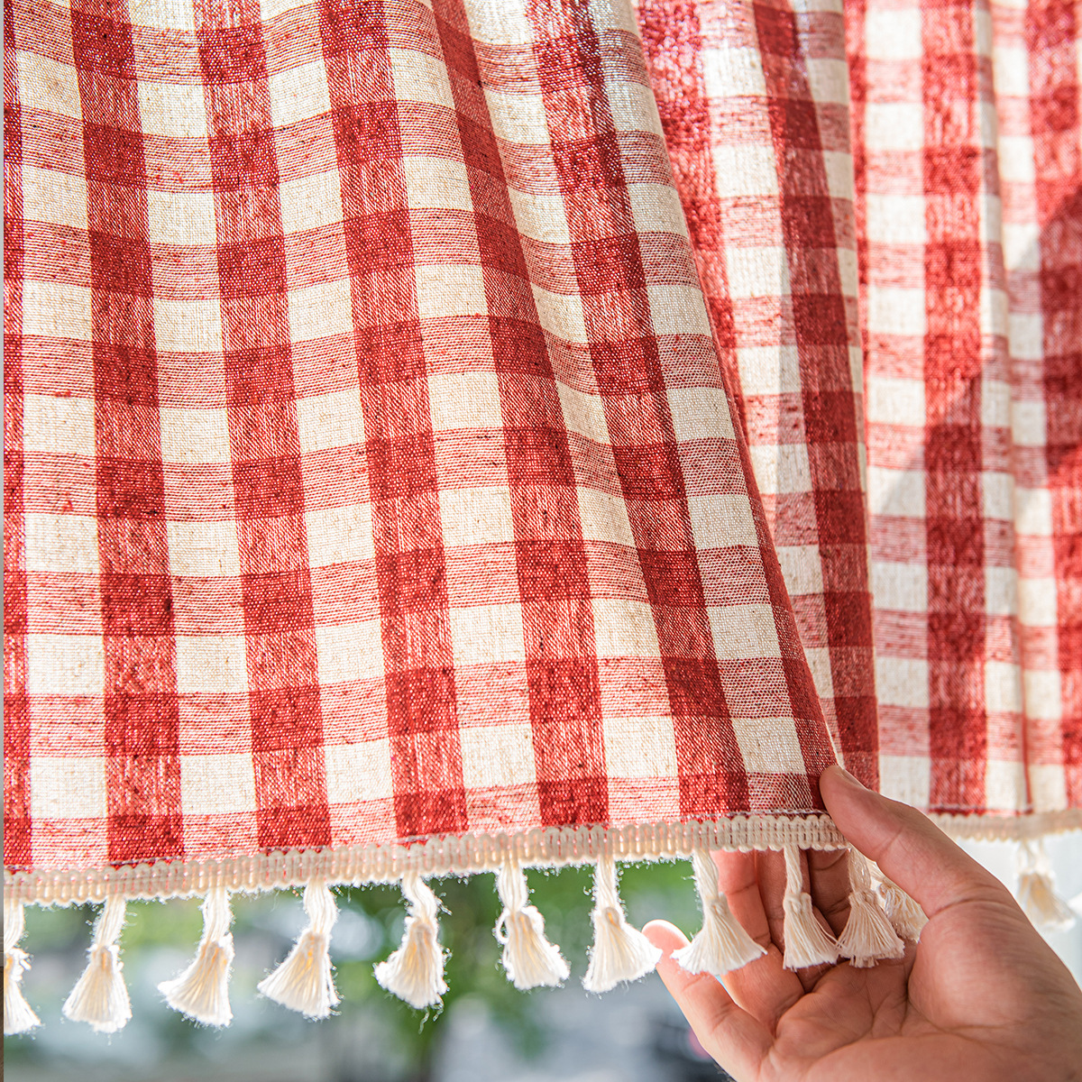 대외 무역 국경 간 완제품 간단한 격자 무늬 자카드 짧은 커튼 술 모방 대마 반음영 커피 짧은 커튼 마감 국경스토어 가기
