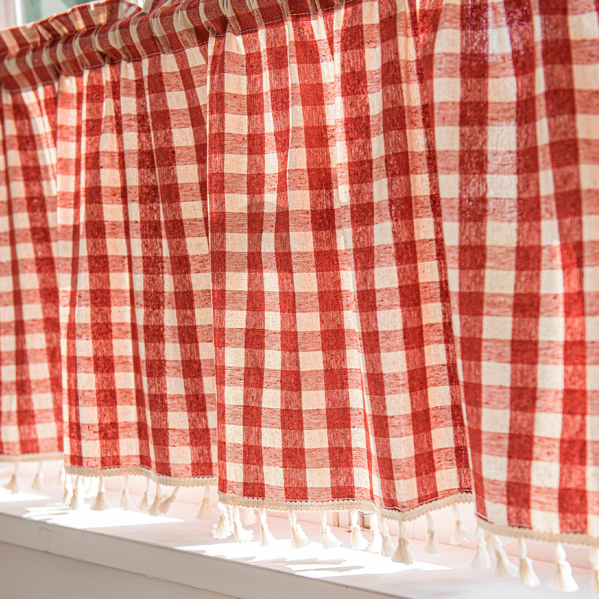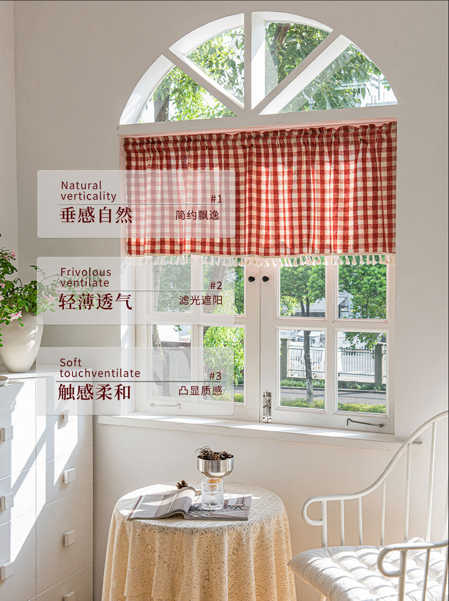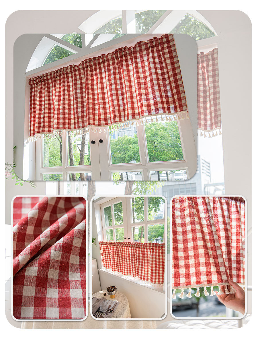 대외 무역 국경 간 완제품 간단한 격자 무늬 자카드 짧은 커튼 술 모방 대마 반음영 커피 짧은 커튼 마감 국경스토어 가기