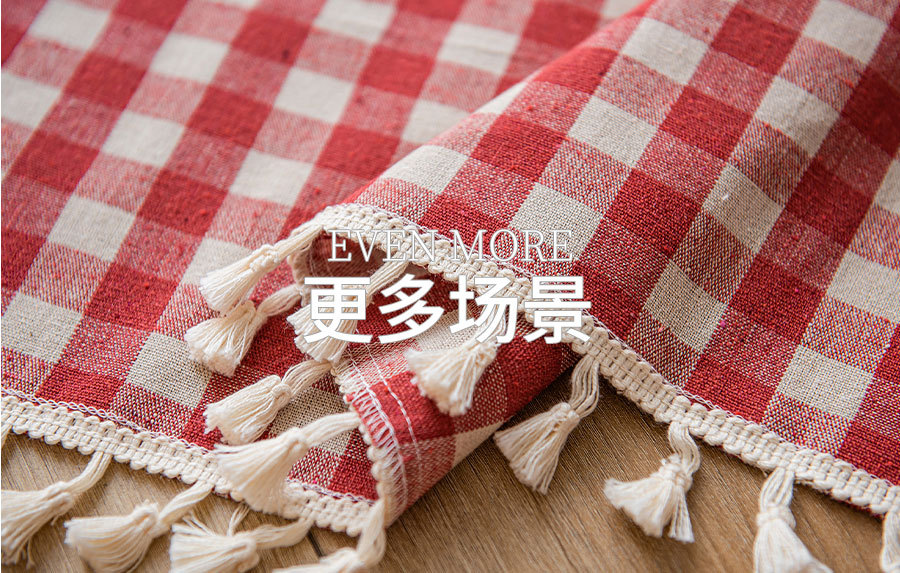 • 자카드-8 레드 체크무늬 + 라이스 태슬