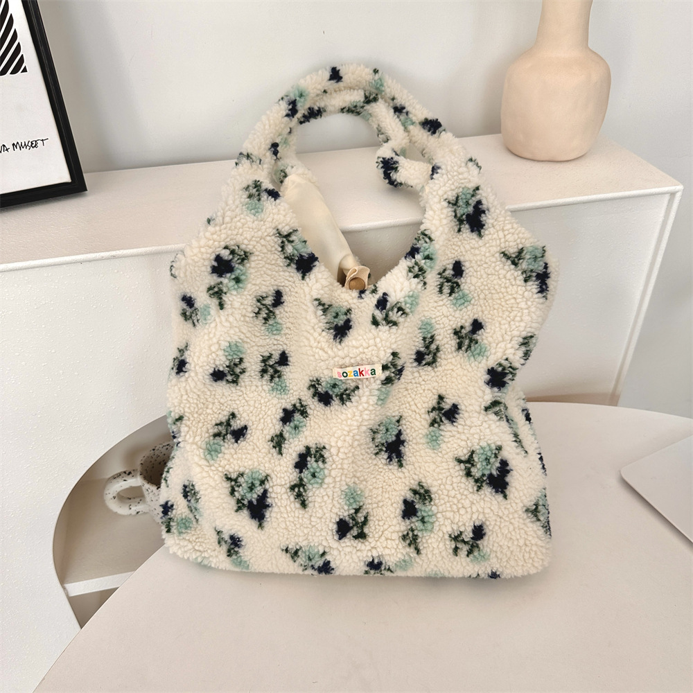 41011 귀여운 봉제 가방 여성의 2024 새로운 봉제 꽃 통근 가을과 겨울 올 매치 대용량 어깨 가방스토어 가기