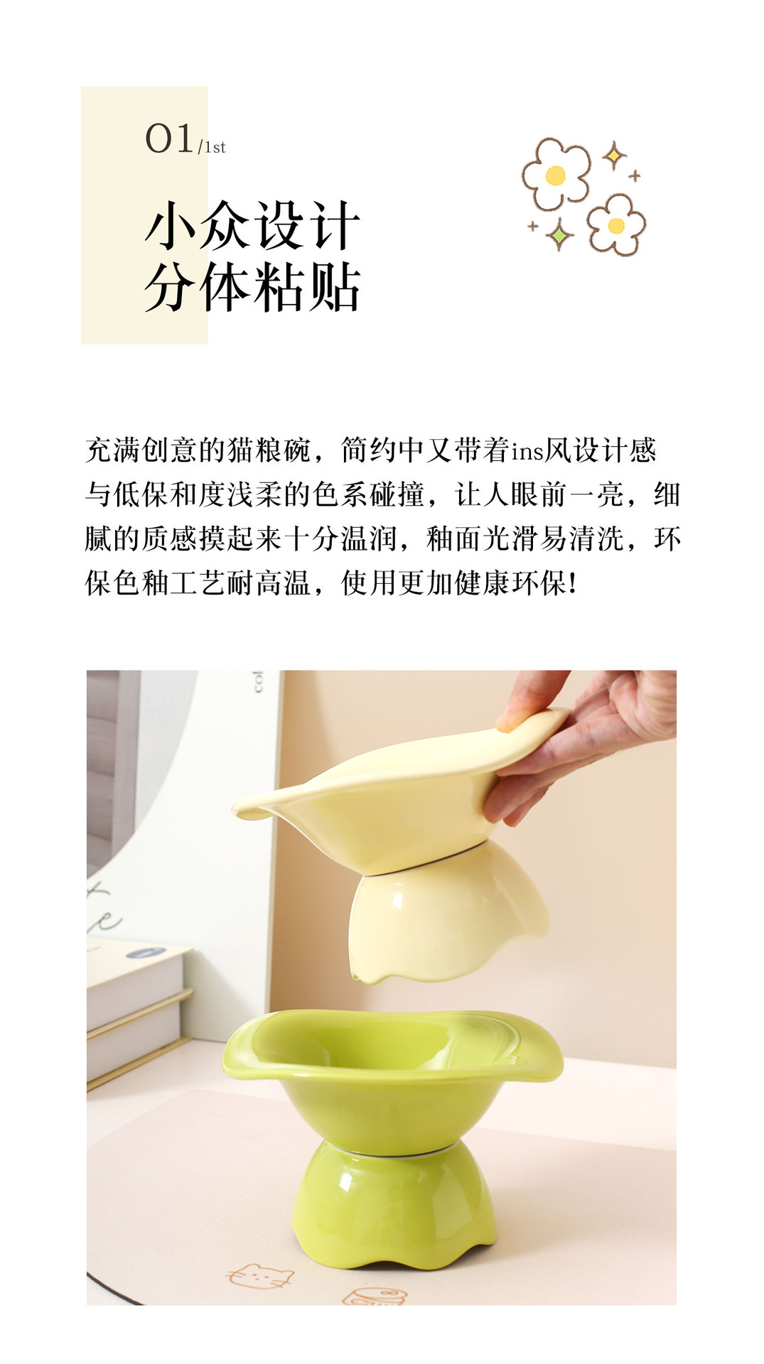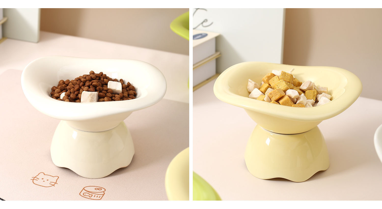 크림 스타일 시리즈 분할 웨이브 애완 동물 그릇 가정용 세라믹 고양이 그릇 개 그릇 높은 발 목 보호 그릇 고양이와 개 식품 분지스토어 가기