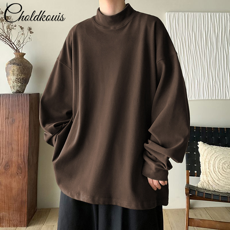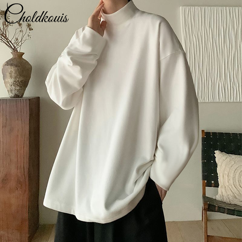 긴팔 남성용 독일산 벨벳 이너웨어 남성복 플러스 벨벳 정장 가을 코트 반하이넥 이너셔츠 성숙한 스타일
