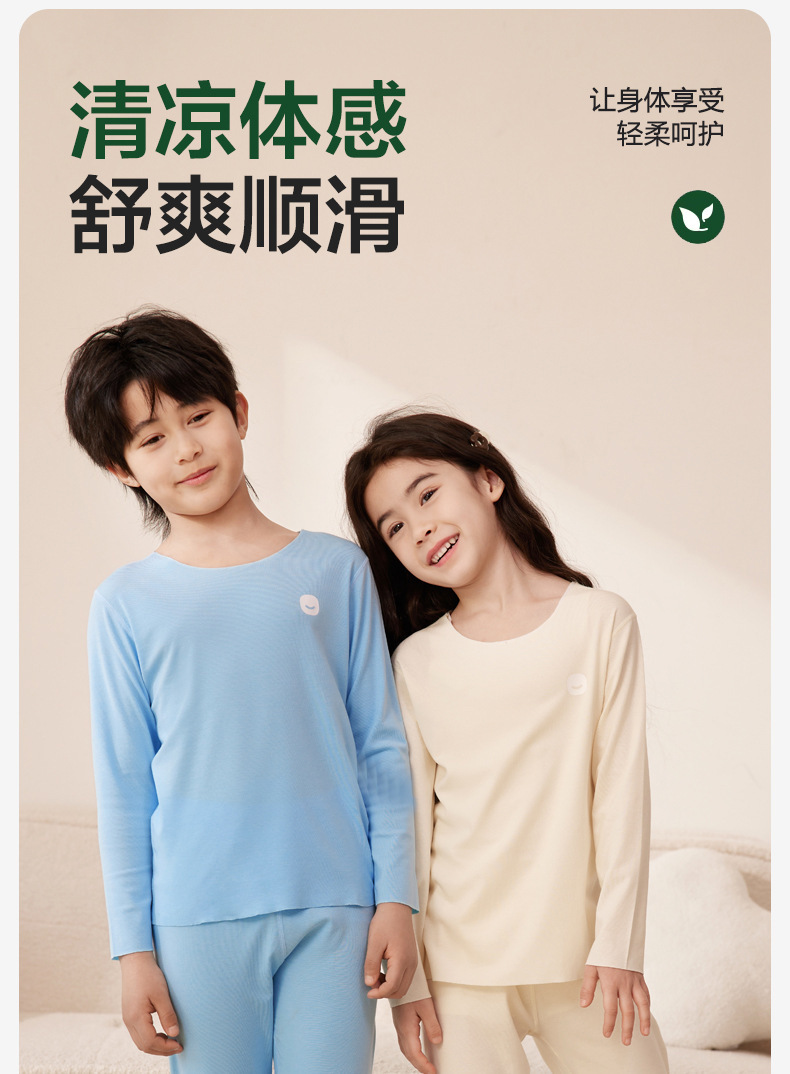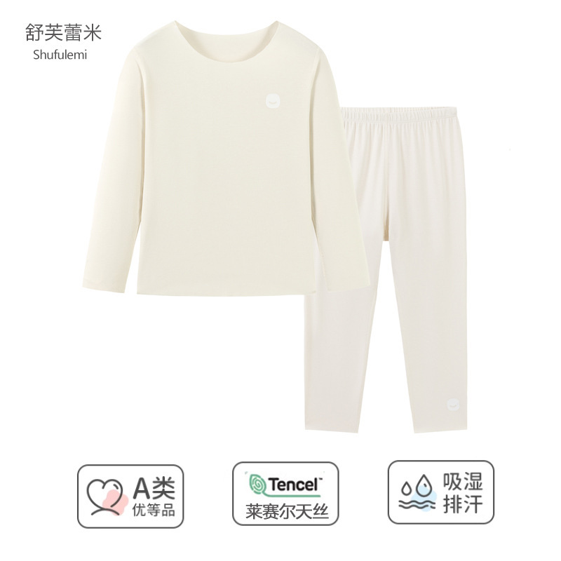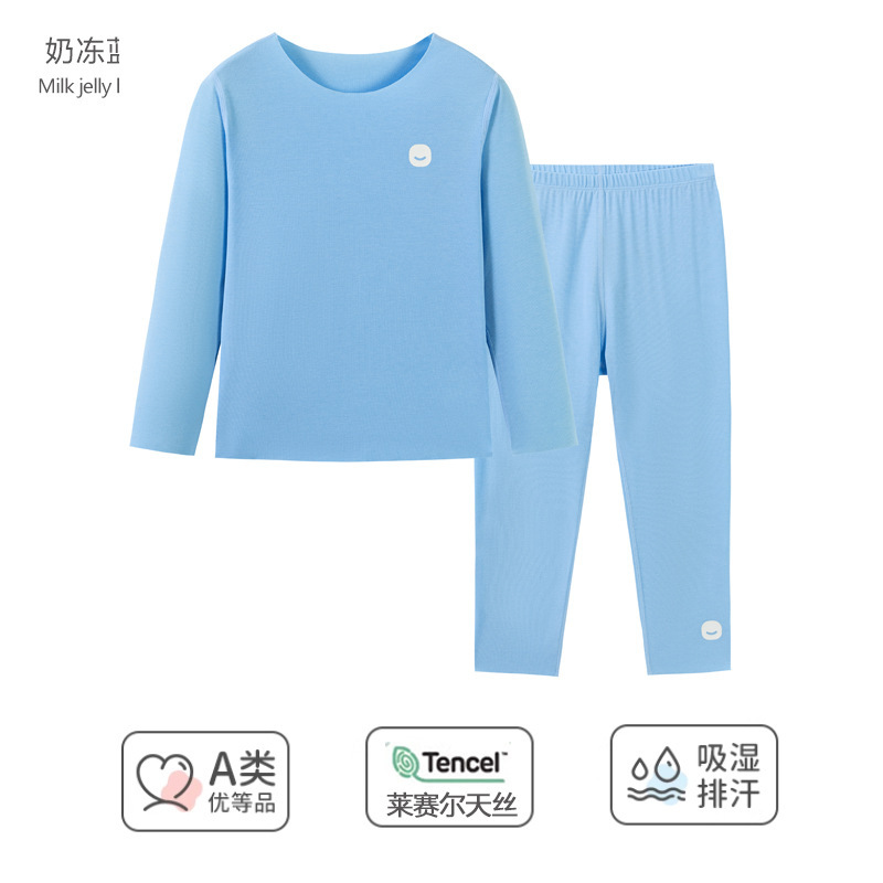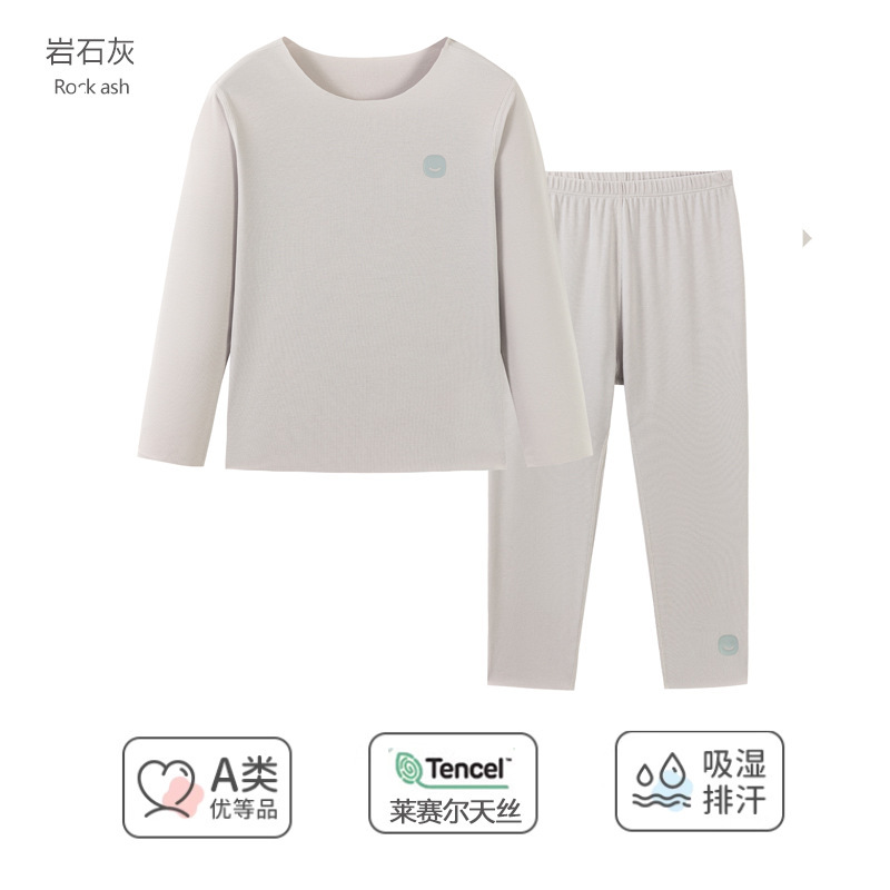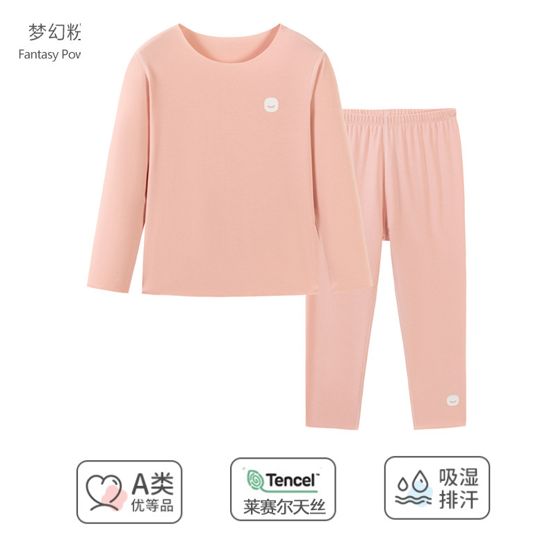 봄과 가을 어린이 잠옷 소년 소녀 Lyocell 홈 의류 세트 중 큰 어린이 내복 가을 옷과 바지 도매
