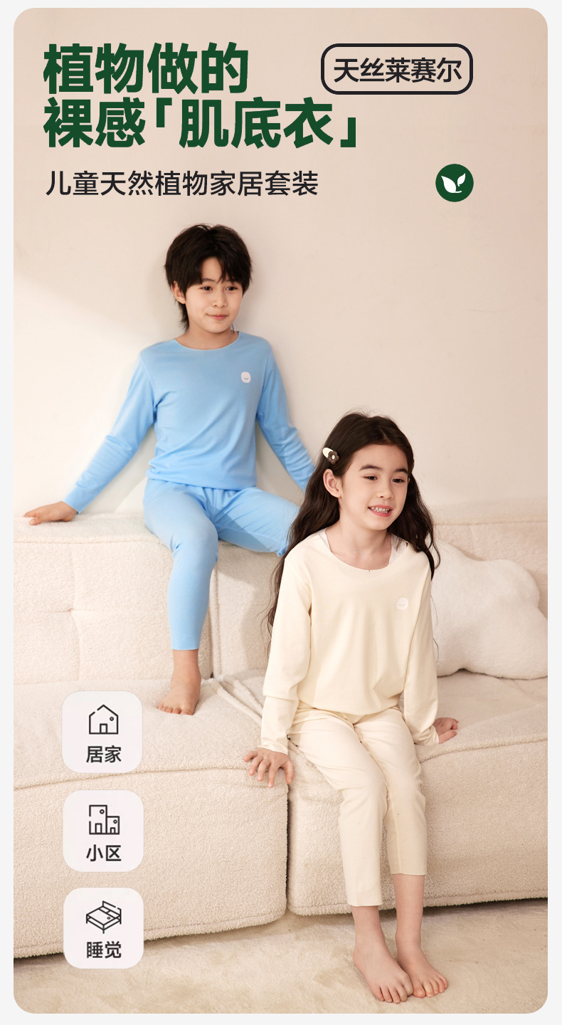 봄과 가을 어린이 잠옷 소년 소녀 Lyocell 홈 의류 세트 중 큰 어린이 내복 가을 옷과 바지 도매스토어 가기