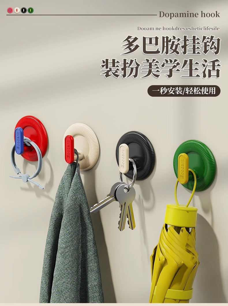 문 교수형 옷 후크 비 천공 도파민 창조적 인 귀여운 후크 가방 모자 욕실 벽 강한 추적없는 스티커 후크