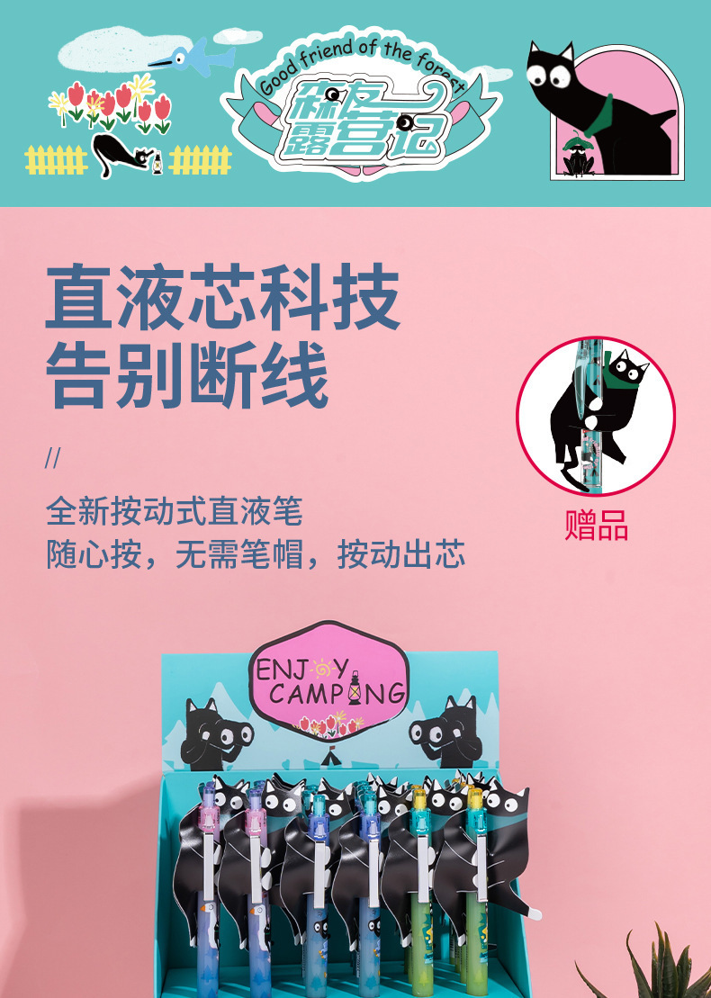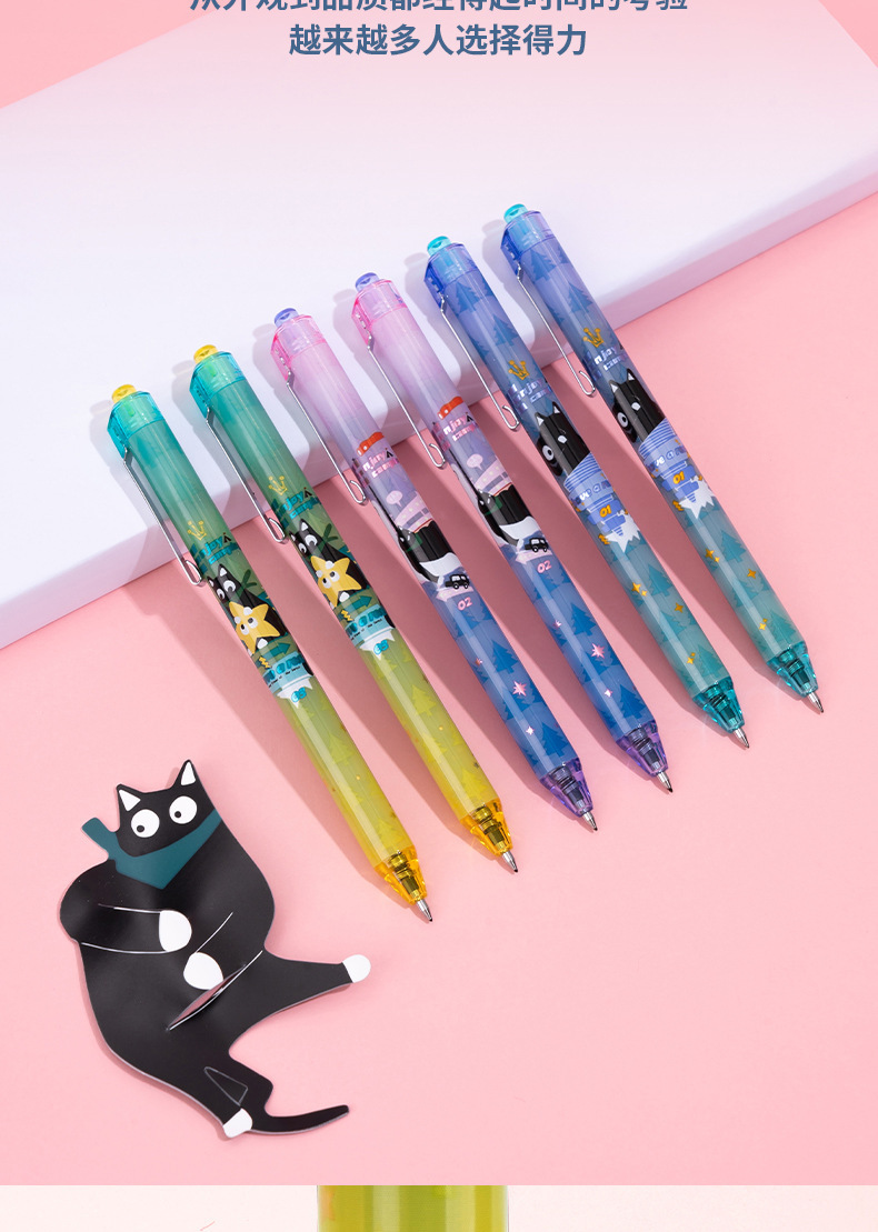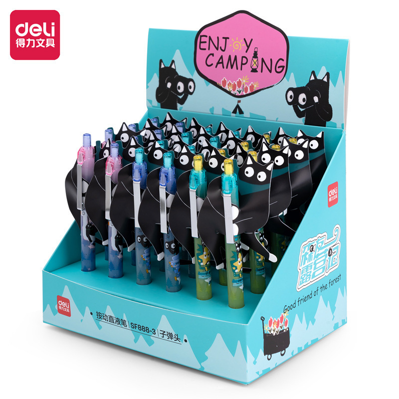 델리 문구 프레스 젤 펜 간단한 만화 테마 학생 0.5mm 스트레이트 액체 펜 검은 총알 펜스토어 가기
