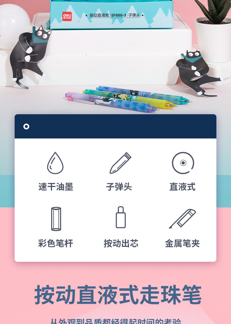델리 문구 프레스 젤 펜 간단한 만화 테마 학생 0.5mm 스트레이트 액체 펜 검은 총알 펜