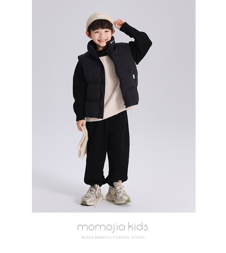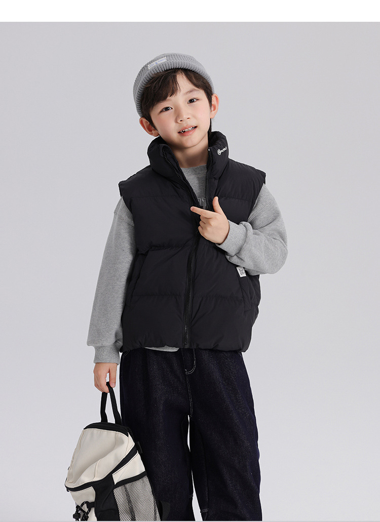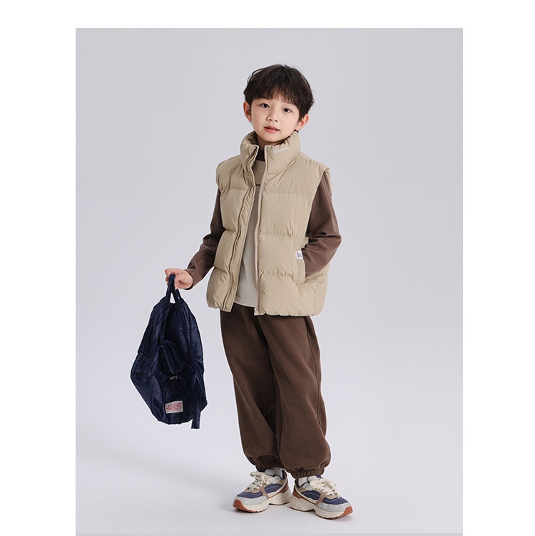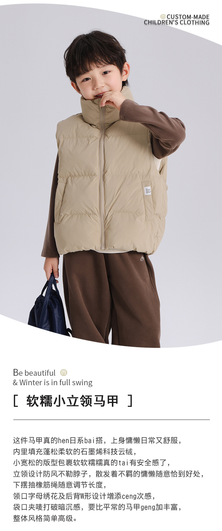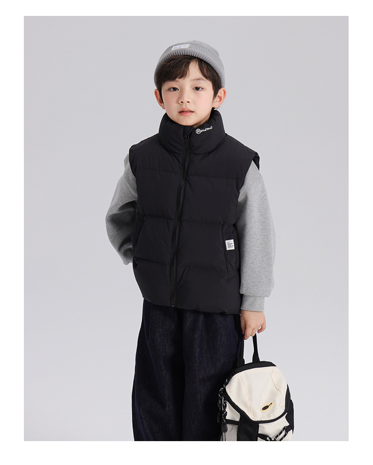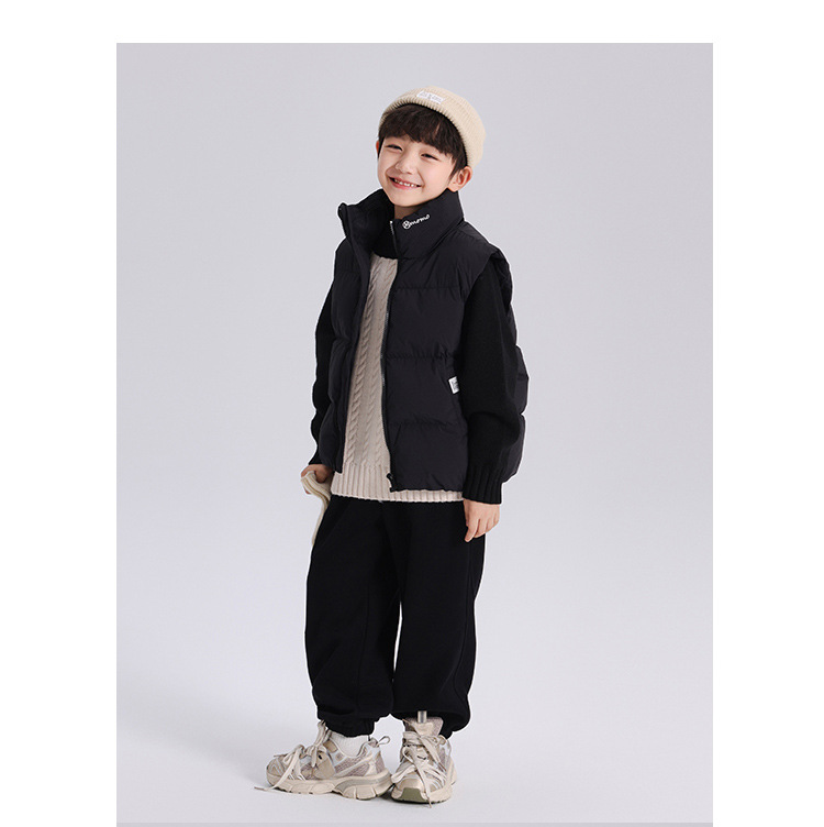 가을 2024 년 새로운 어린이 칼라 스티칭 조끼 유행 간단한 소년 올리 벨벳 조끼 두껍게
