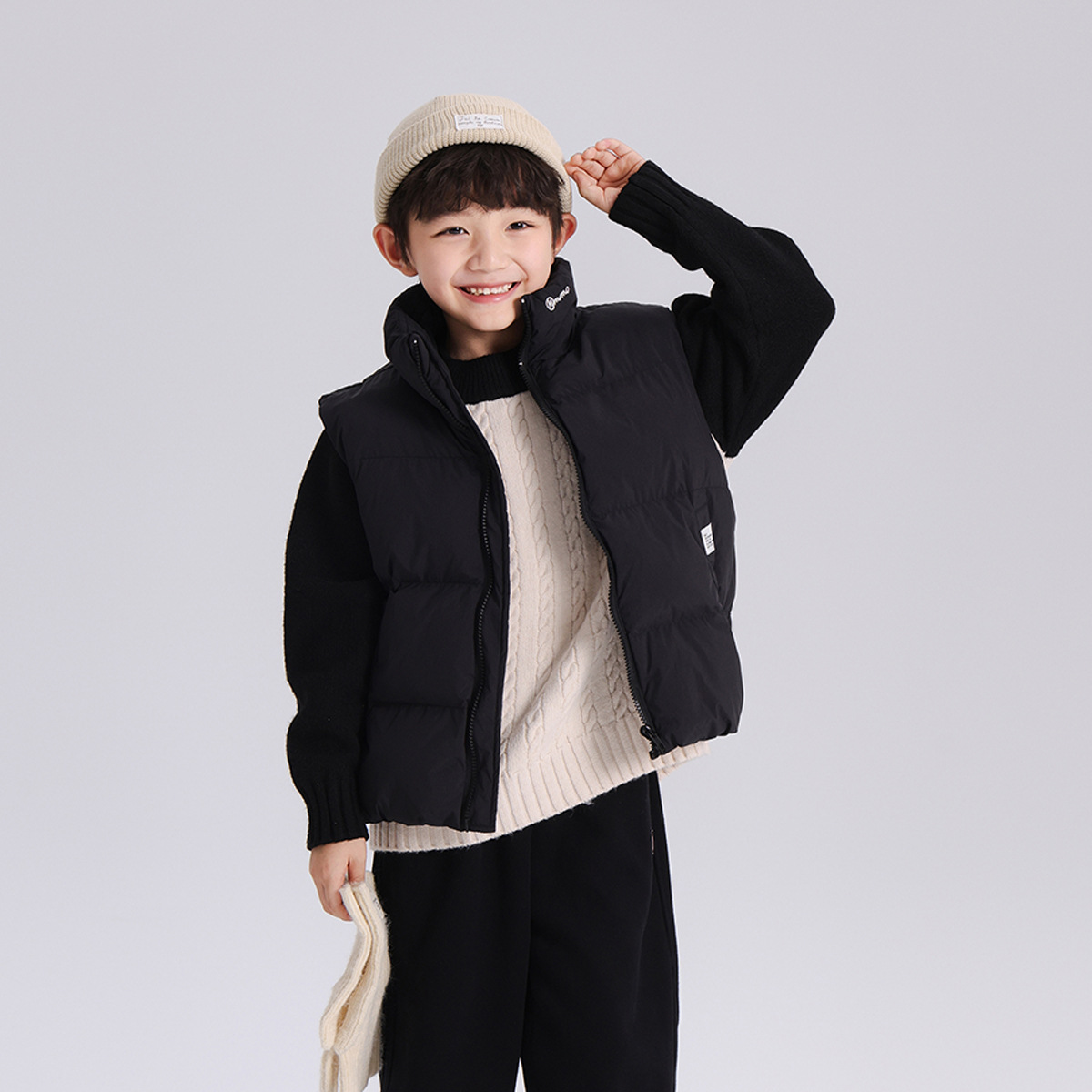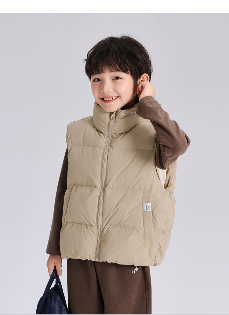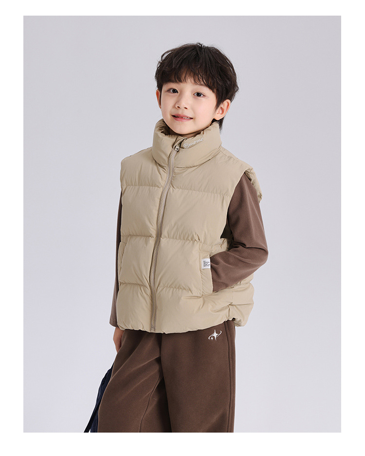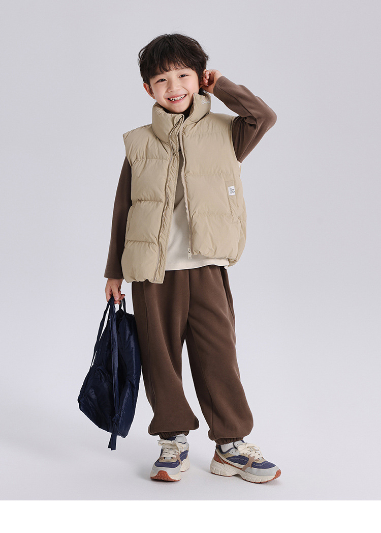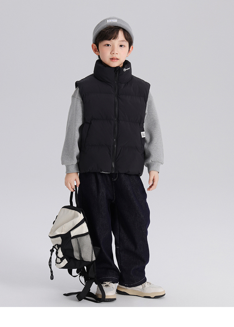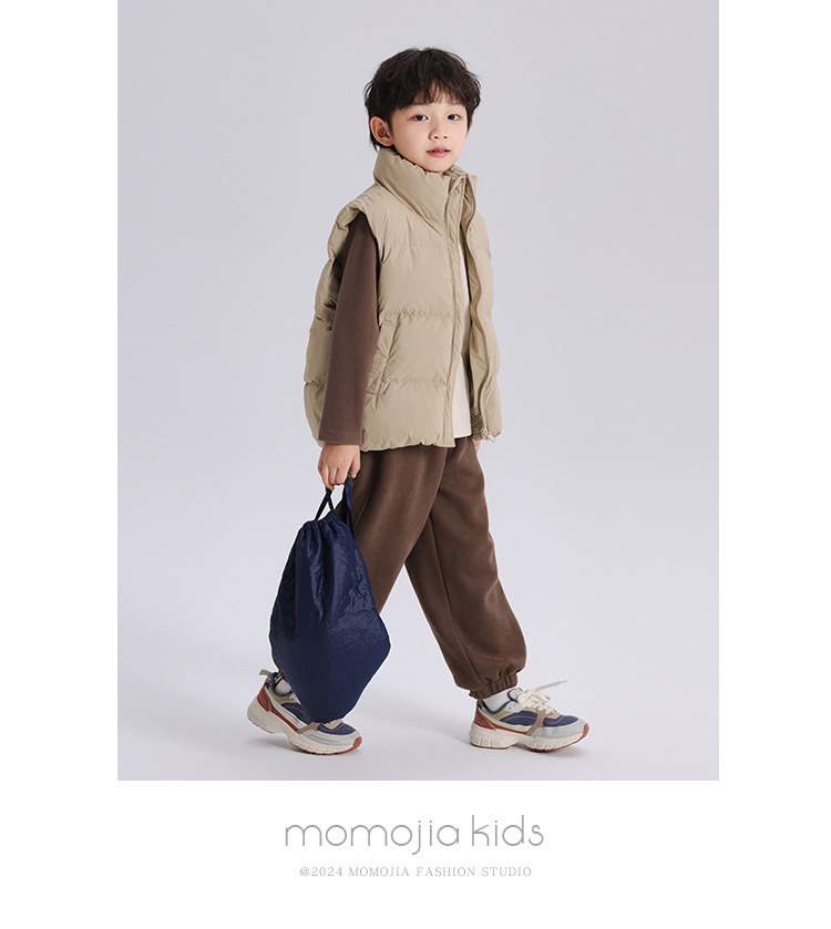 가을 2024 년 새로운 어린이 칼라 스티칭 조끼 유행 간단한 소년 올리 벨벳 조끼 두껍게