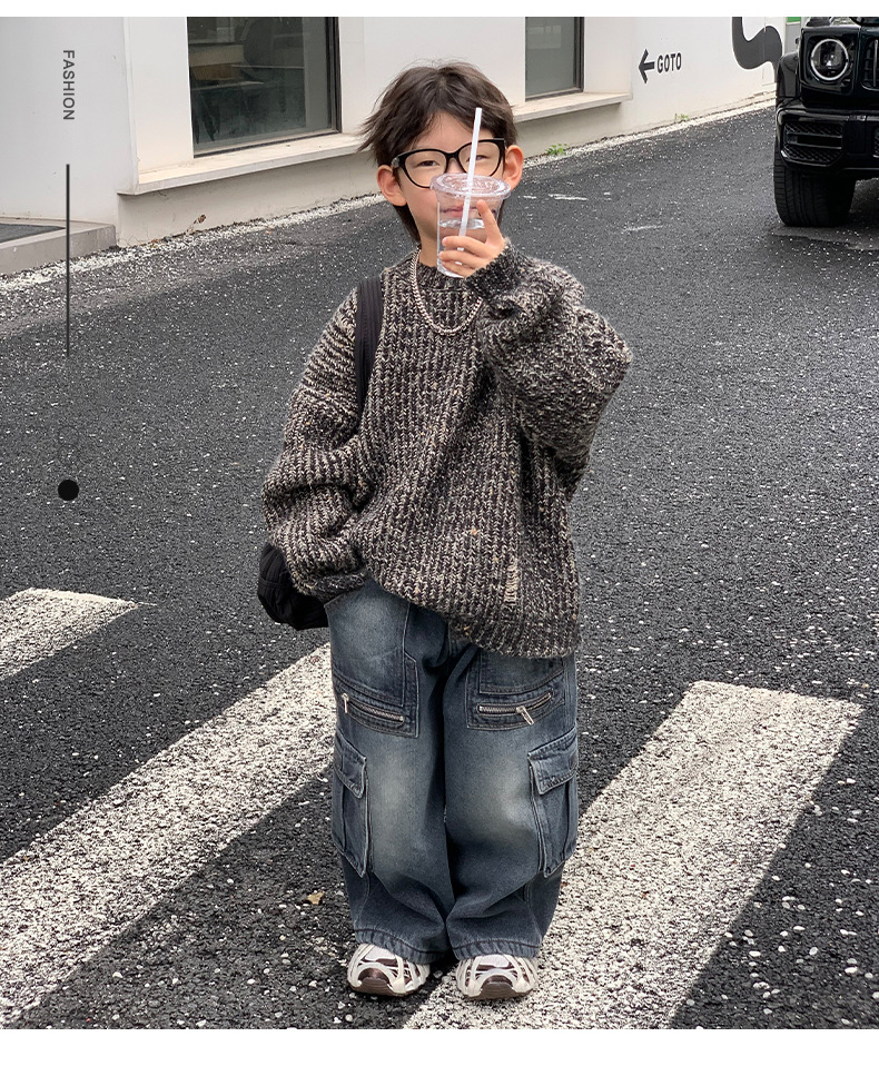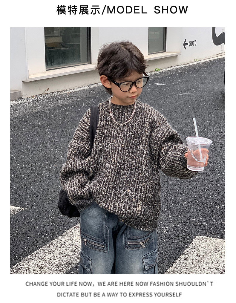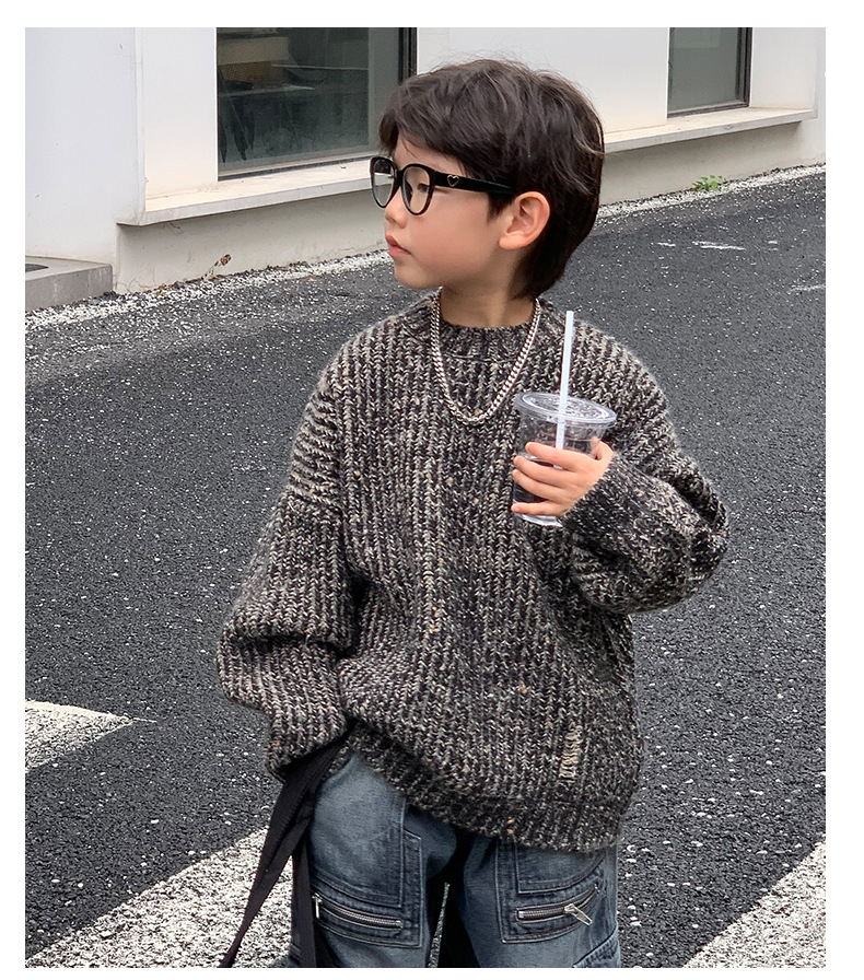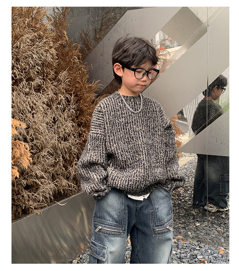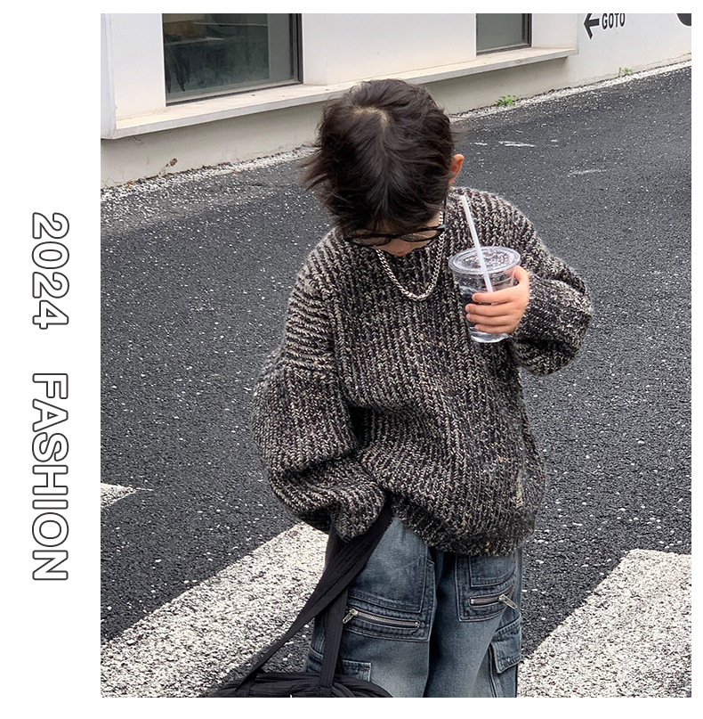 남아의 따뜻한 스웨터 2024 겨울 새 어린이 한국 스타일 서양식 탑 어린이 가을 겨울 아우터 풀오버스토어 가기