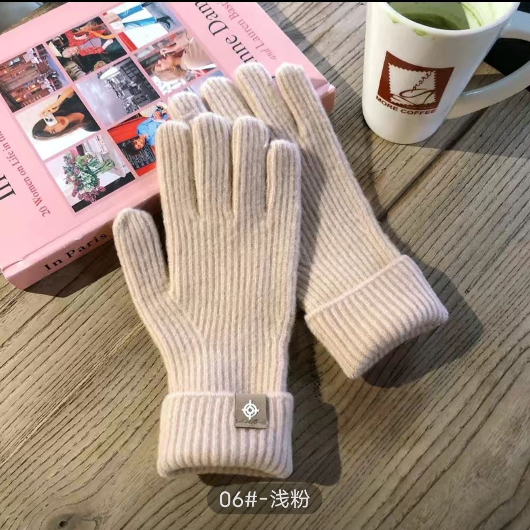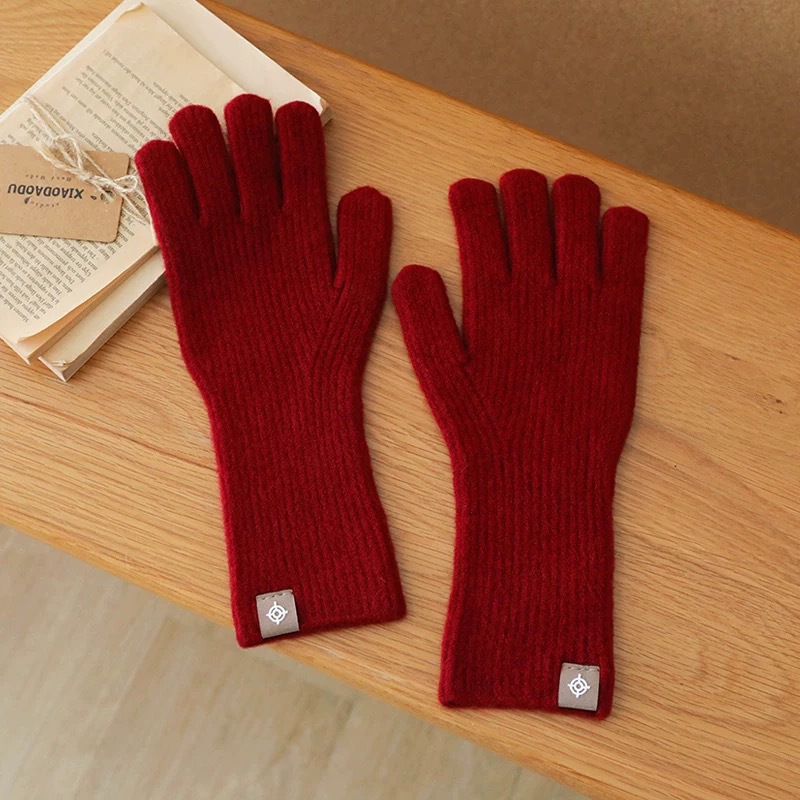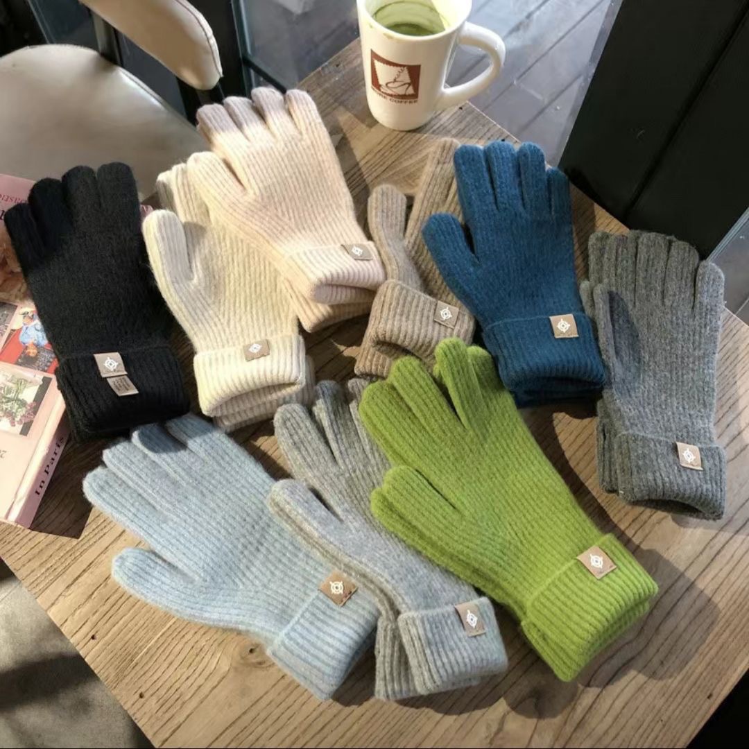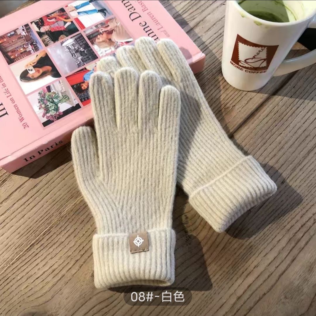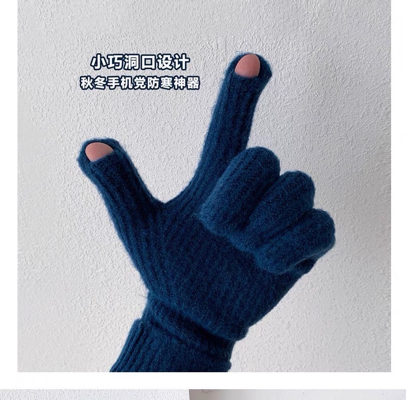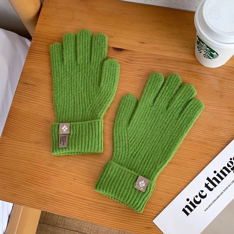 새로운 한국식 솔리드 컬러 니트 라벨 핑거 장갑 열린 손가락 터치 스크린 반 차가운 웨이브 작은 빨간 책 잔디 야외 타기