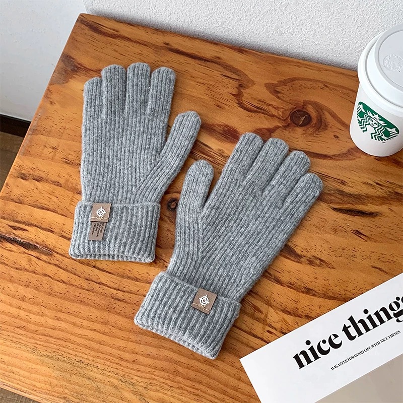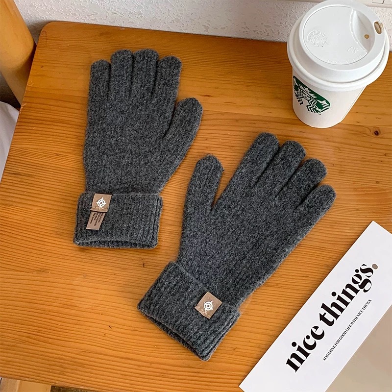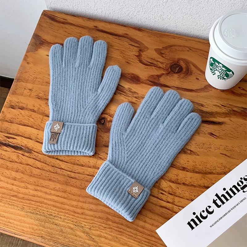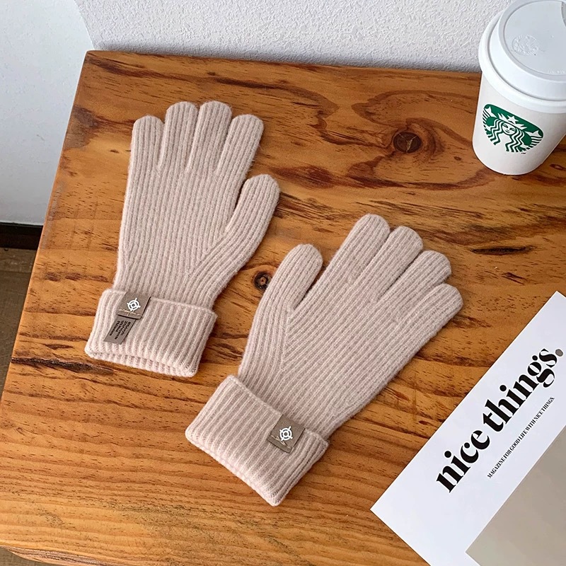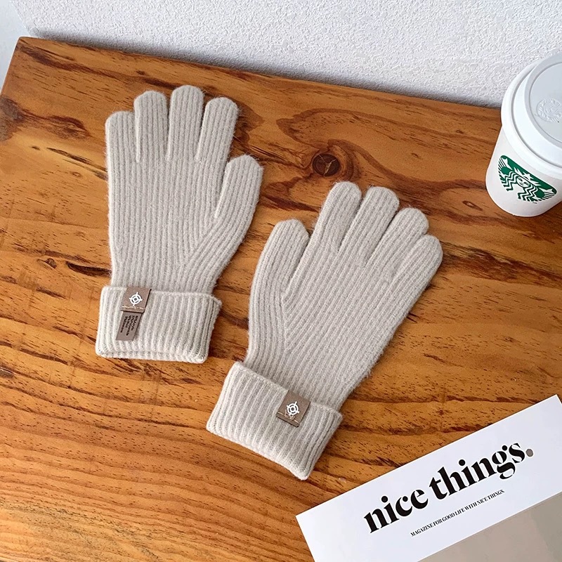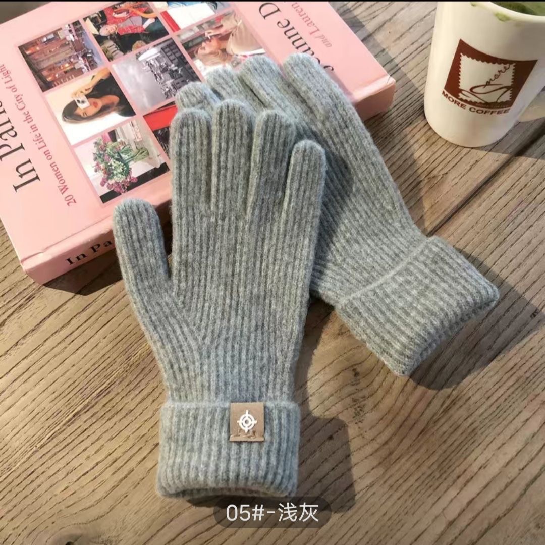 새로운 한국식 솔리드 컬러 니트 라벨 핑거 장갑 열린 손가락 터치 스크린 반 차가운 웨이브 작은 빨간 책 잔디 야외 타기
