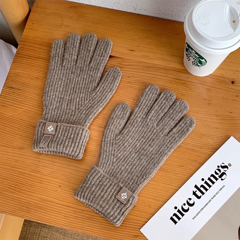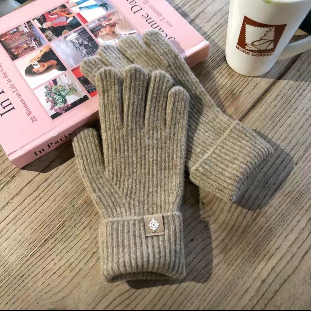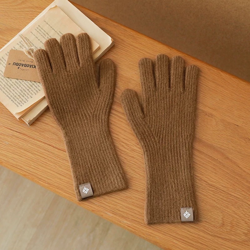 • 양모 다섯 손가락 장갑 - 적갈색