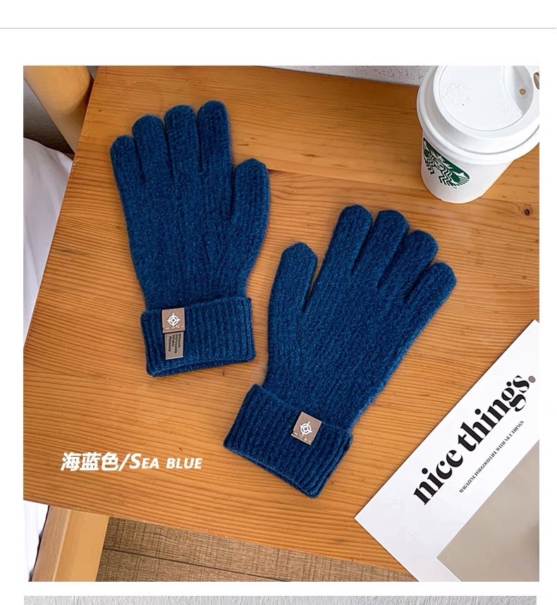 • 양모 다섯 손가락 장갑 - 진한 파란색