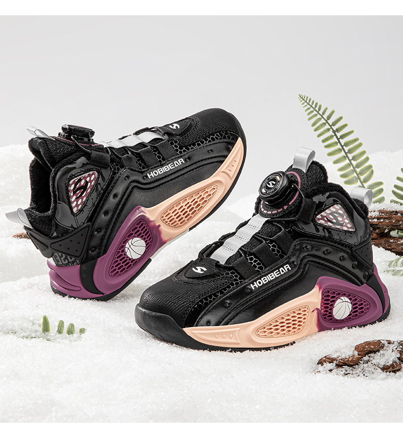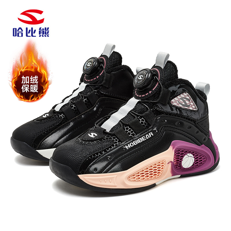 Habixiong 두 면화 소년 농구 신발 겨울 소녀 플러스 벨벳 라이닝 운동화 야외 버튼 신발 공장 아울렛